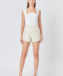 Endless Rose Women’s Sequin Shoulder Padded Top | White|black