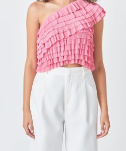 Endless Rose Women’s Ruffled Asymmetrical Bodysuit | Green|orange|black|powder Blue|white|pink