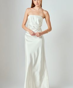 Endless Rose Women’s Dresses Strapless Satin Maxi Dress | Ivory