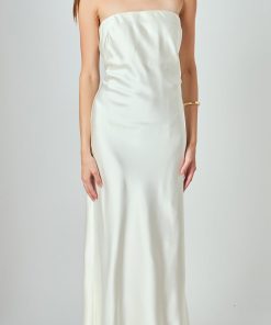 Endless Rose Women’s Dresses Strapless Satin Maxi Dress | Ivory