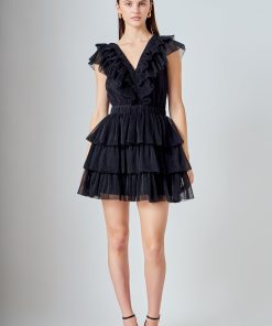 Endless Rose Women’s Dresses Tiered Tulle Mini Dress | Black|cherry|jade|olympian|amazon
