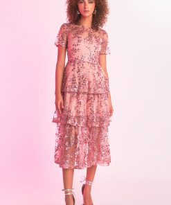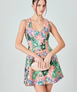 Endless Rose Women’s Dresses Lindsey Floral Jacquard Strapless Blouson Mini Dress | Pink & Orange