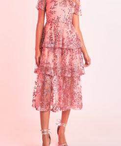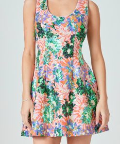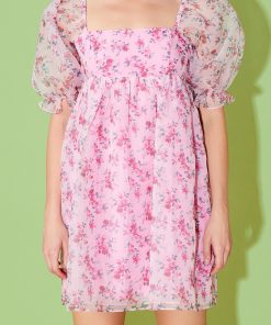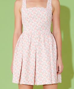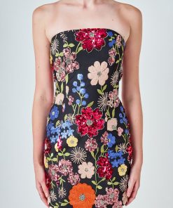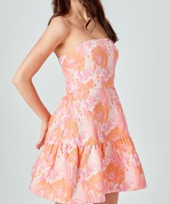 Endless Rose Women’s Dresses Lindsey Floral Jacquard Strapless Blouson Mini Dress | Pink & Orange