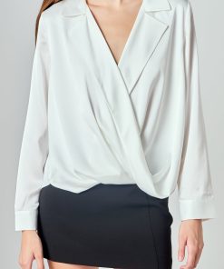 Endless Rose Women’s Wrapped Satin Blouse | White|black|baby Pink|cream|magenta