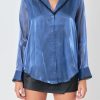 Endless Rose Women’s Beaded Collar Relaxed Blouse | Navy
