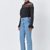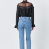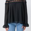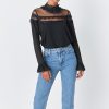 Endless Rose Women’s Blouse With Mesh Yoke And Lace Trim Detail | Black
