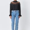Endless Rose Women’s Blouse With Mesh Yoke And Lace Trim Detail | Black