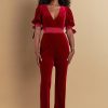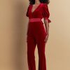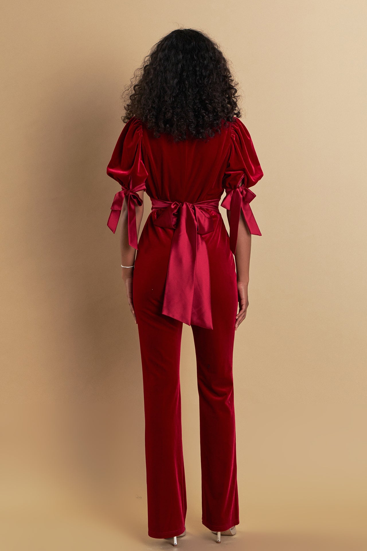 Endless Rose Women’s Bow Tie Sleeve Velvet Jumpsuit | Rouge