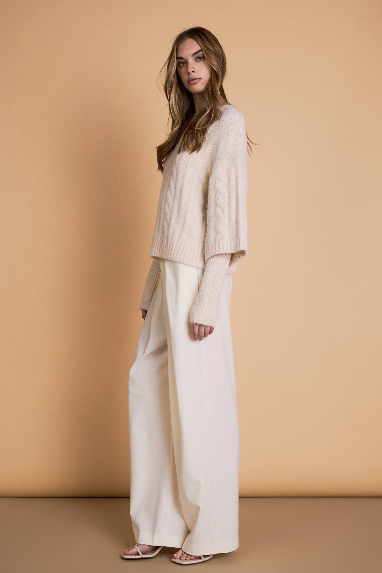 Endless Rose Women’s Cable Twofer Sweater | Cream