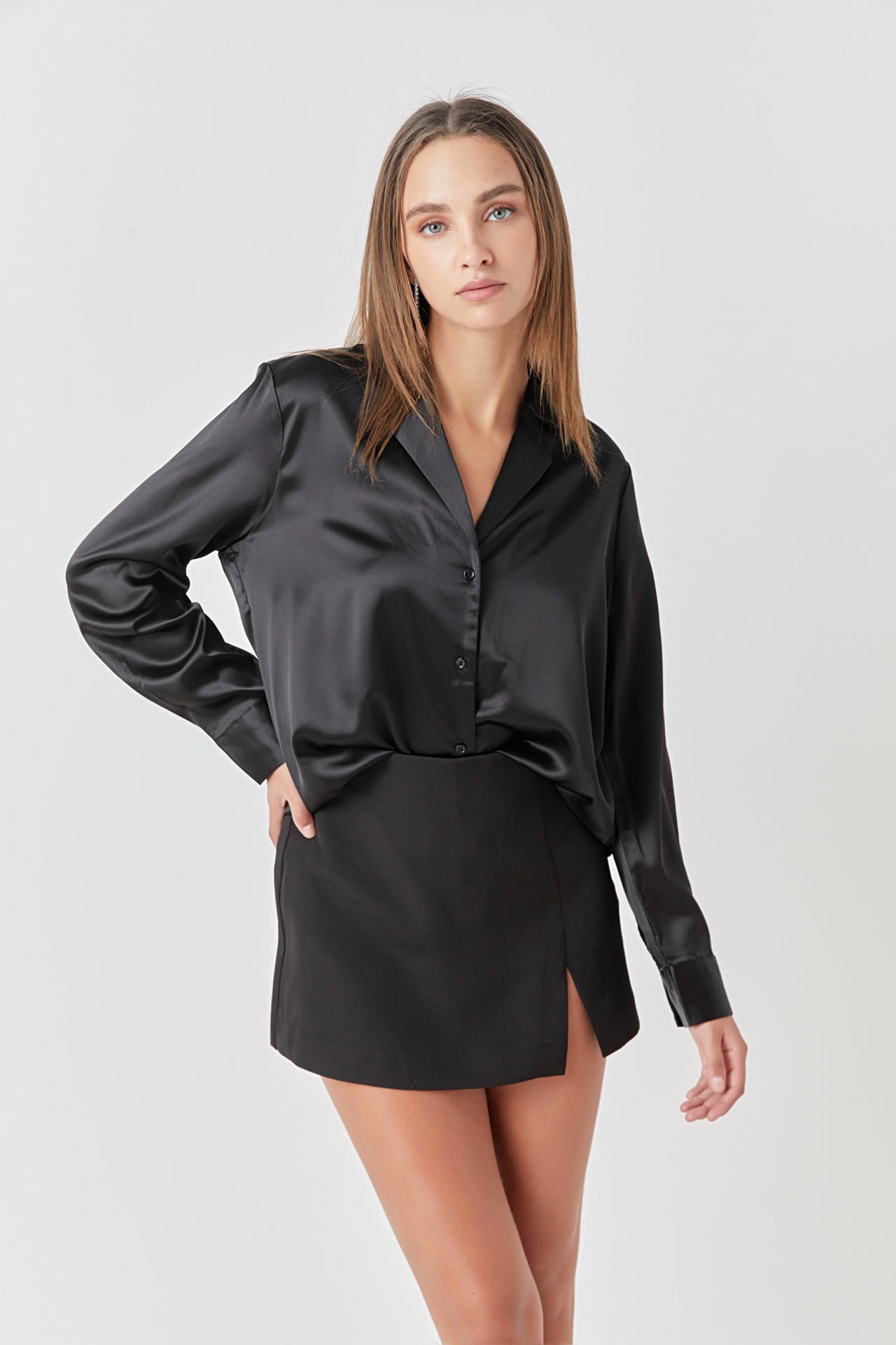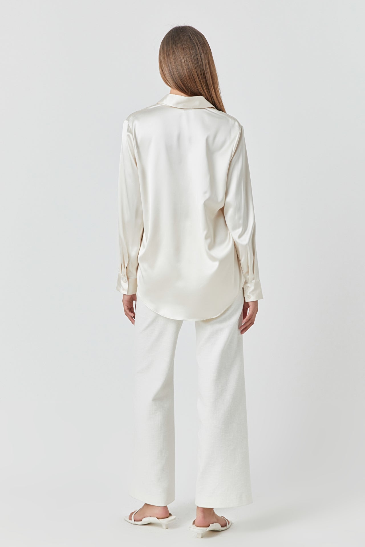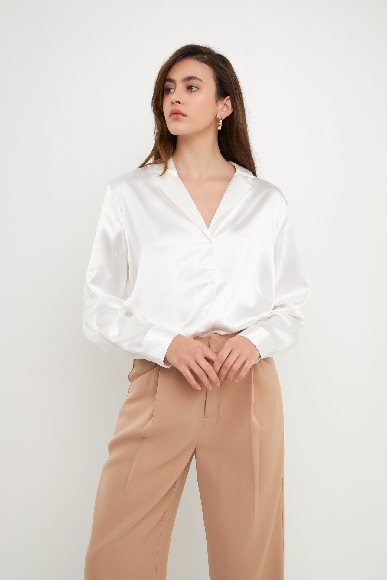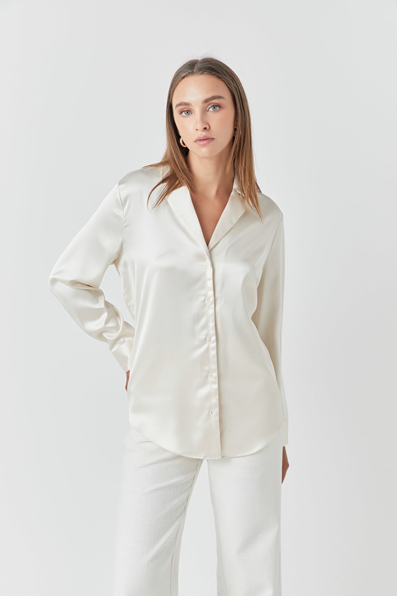 Endless Rose Women’s Classic Satin Over Shirt | Taupe|rose|aqua|navy|champagne|black|white|green|grape