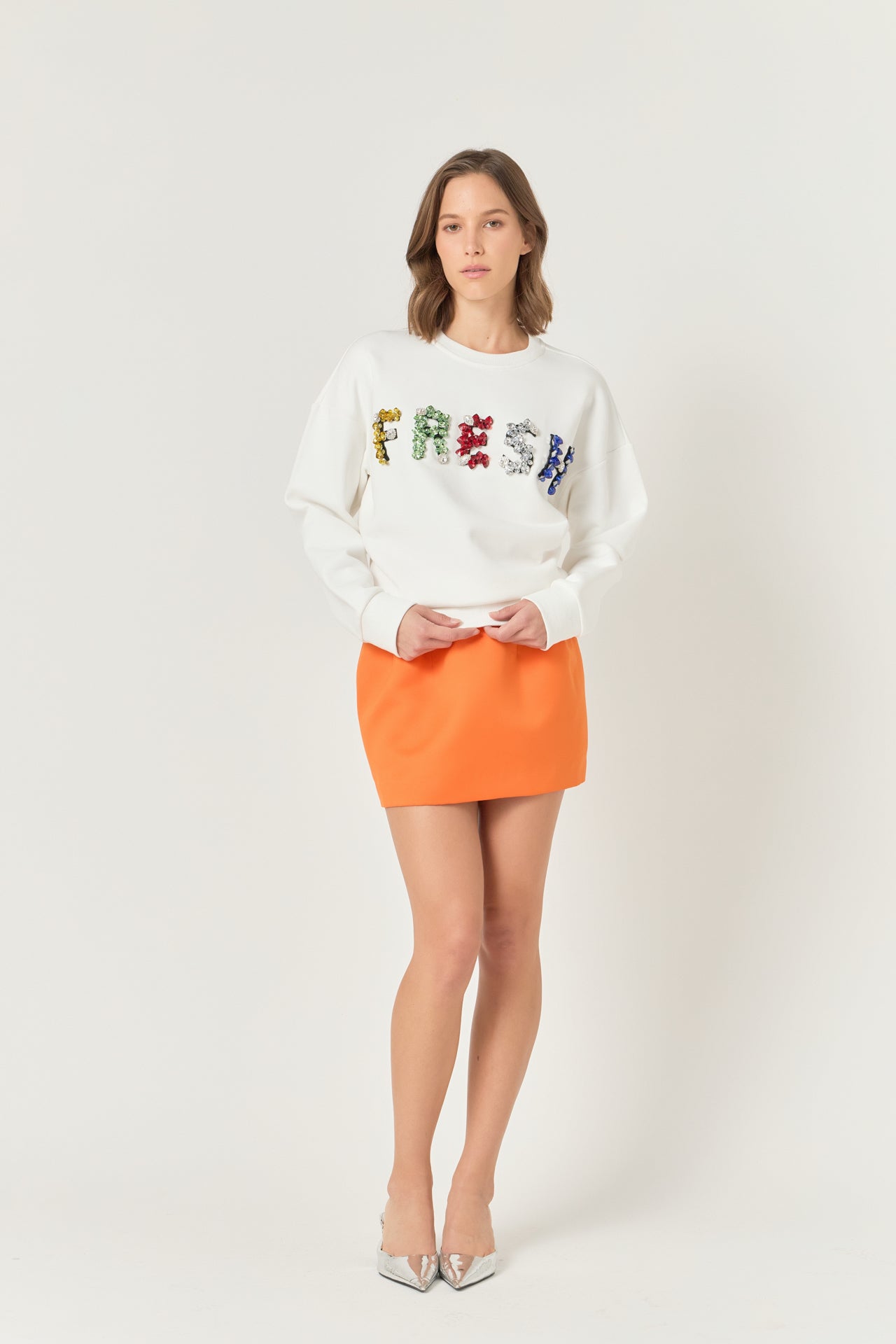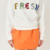 Endless Rose Women’s Color Letter Patch Sweatshirt | White