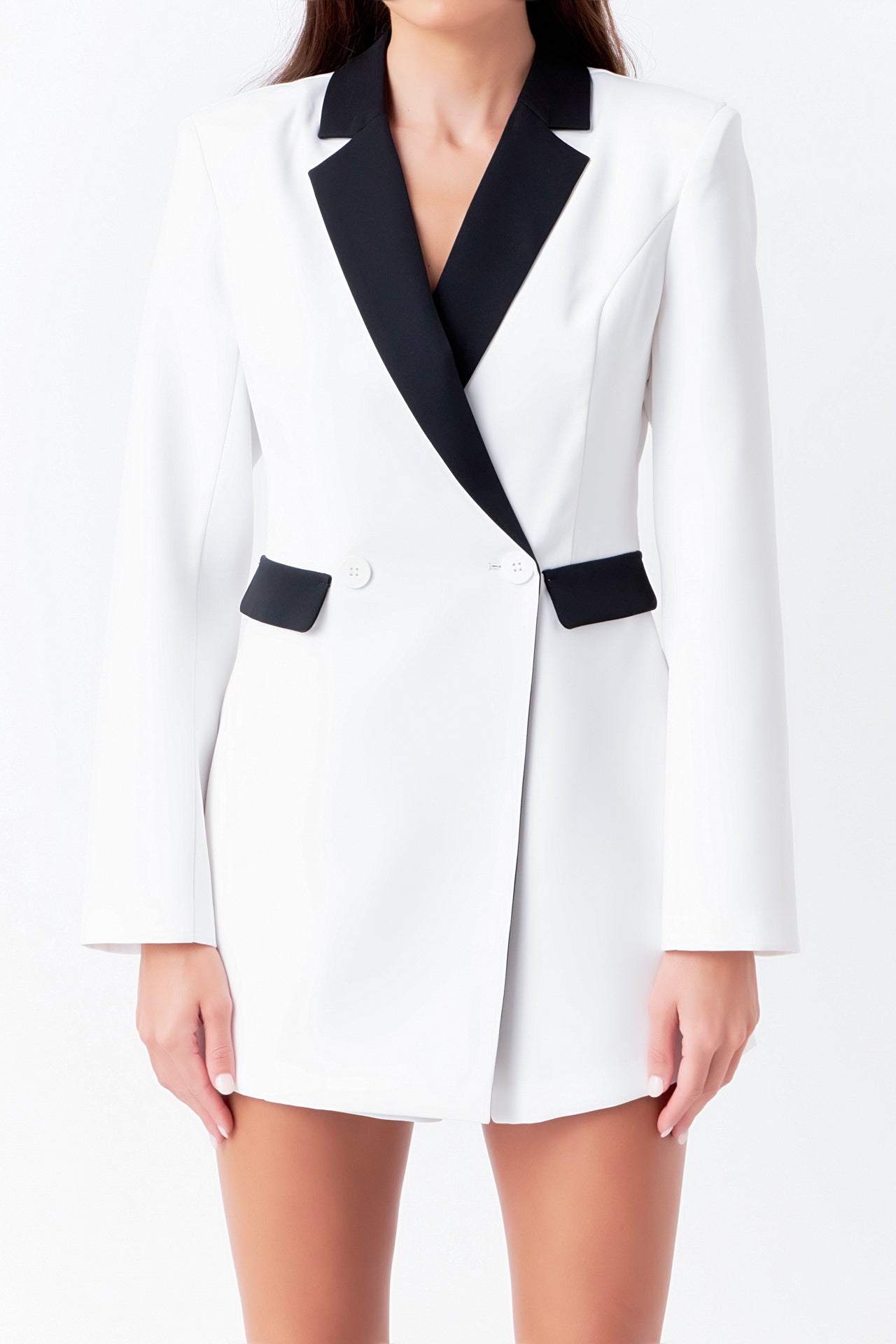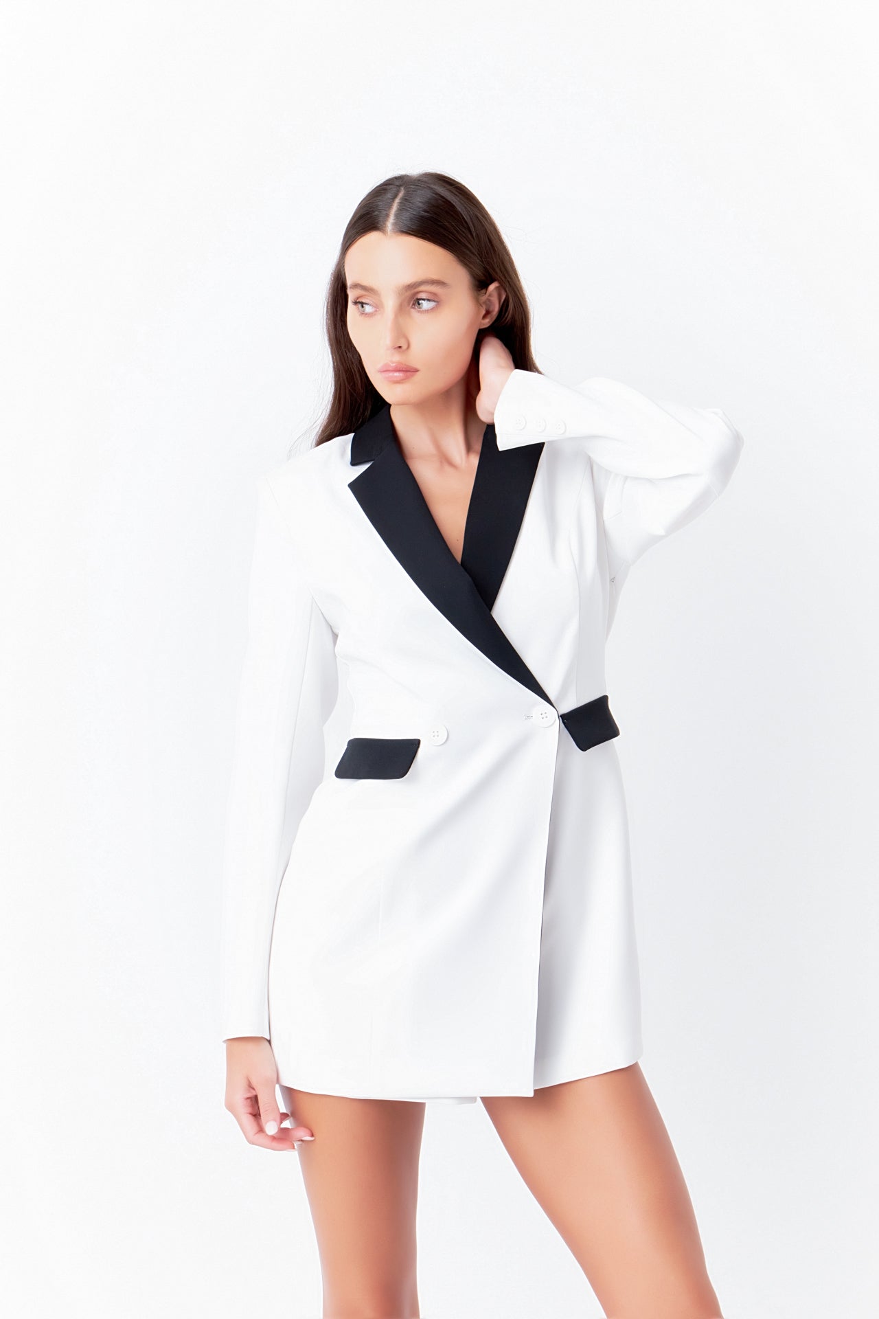 Endless Rose Women’s Contrasted Blazer Romper | White & Black
