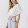 Endless Rose Women’s Cotton Drop Shoulder Crop Top | White