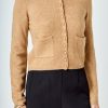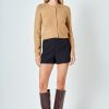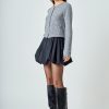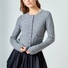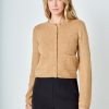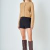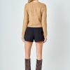 Endless Rose Women’s Crewneck Button Down Knit Top | Grey|camel
