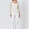 Endless Rose Women’s Crochet Knit Collared Top | Ivory & Black