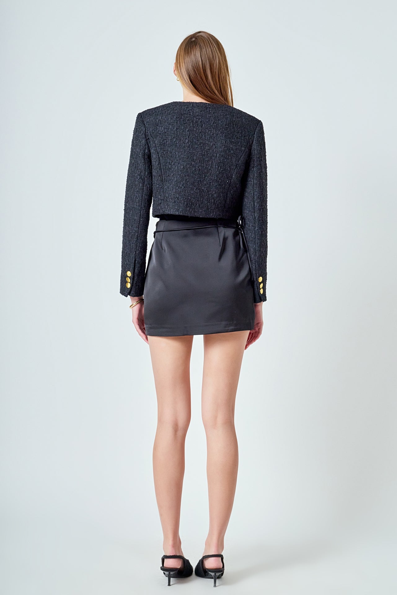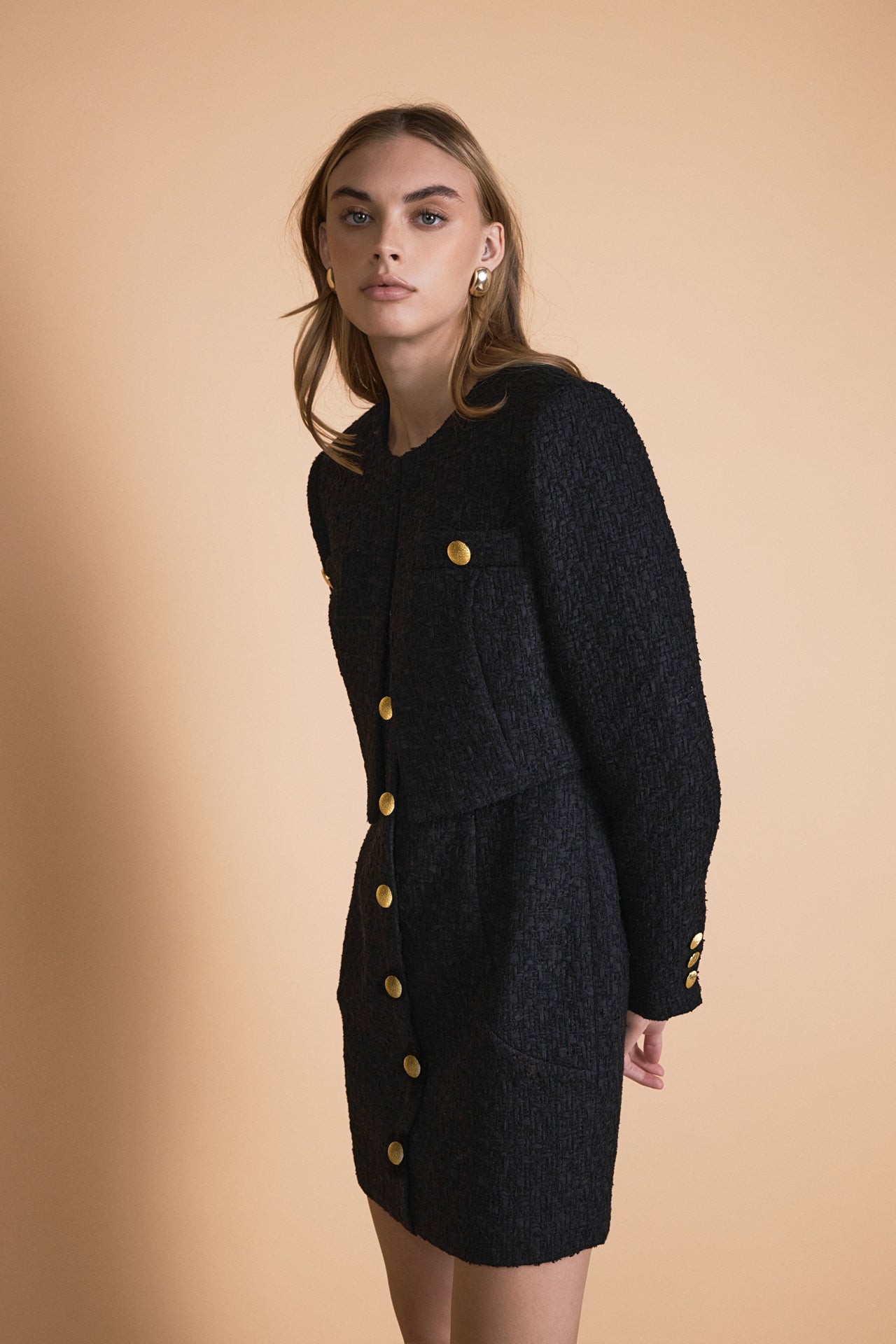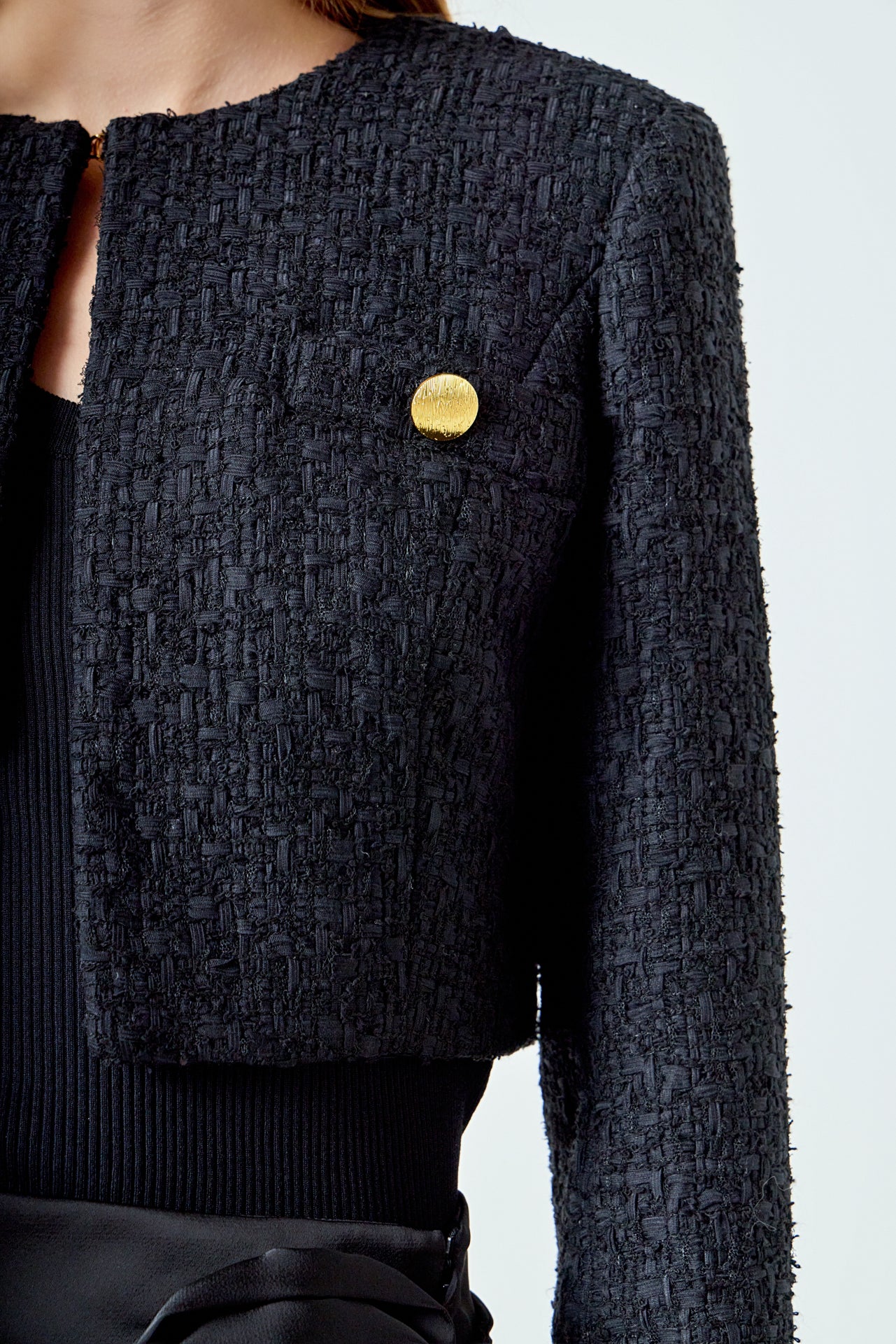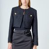 Endless Rose Women’s Cropped Buttoned Tweed Jacket | Black