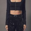 Endless Rose Women’s Cropped Knit Buttoned Top | Black