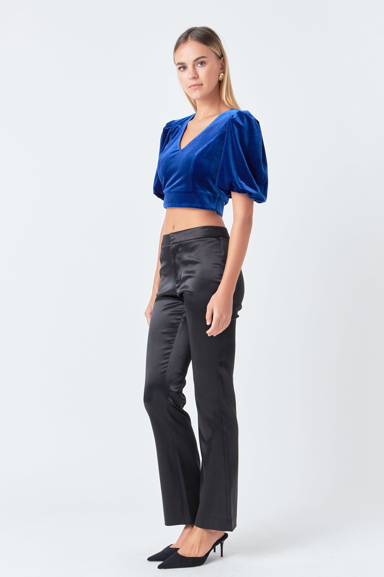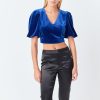 Endless Rose Women’s Cropped Velvet Puff Sleeve Top | Cobalt Blue