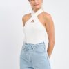 A must-have for all your warm weather style needs. This tank is a key piece for creating endless summer style possibilities. The crossover halter neckline adds a touch of elegance, while the rib knit fabric keeps you comfortable all day long. Whether you’re dressing it up or down, this tank is perfect for any summer occasion.