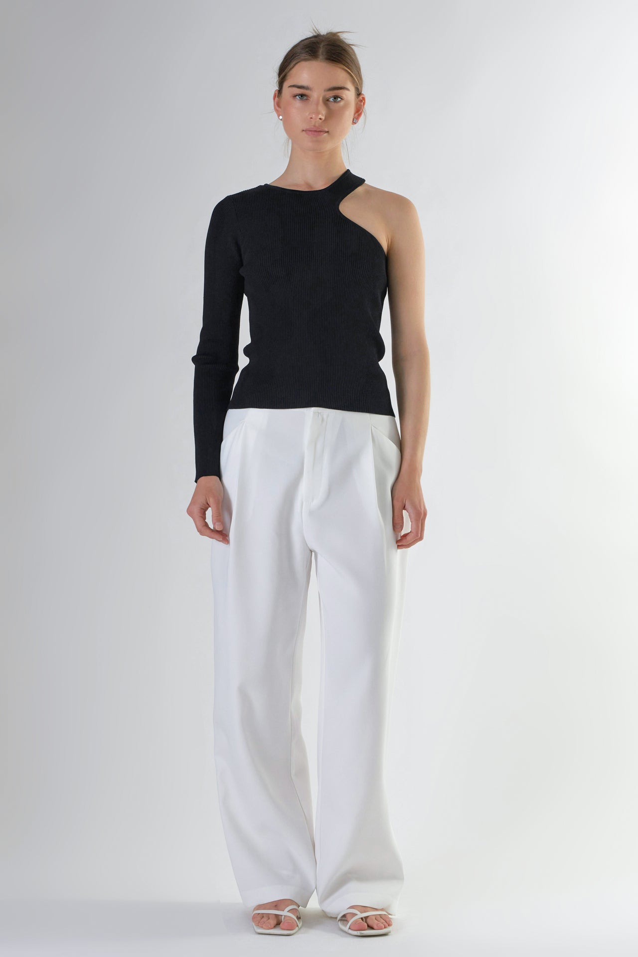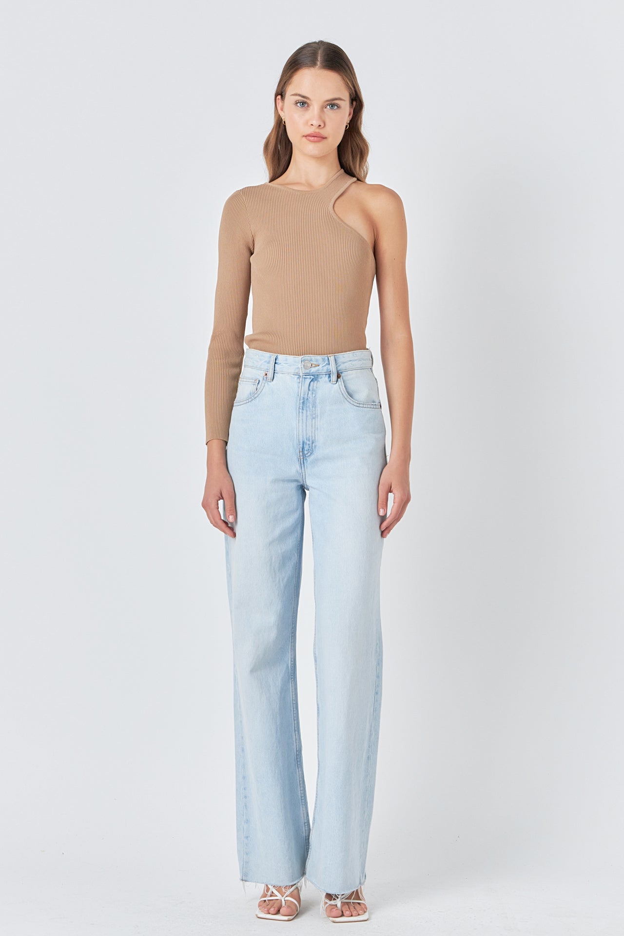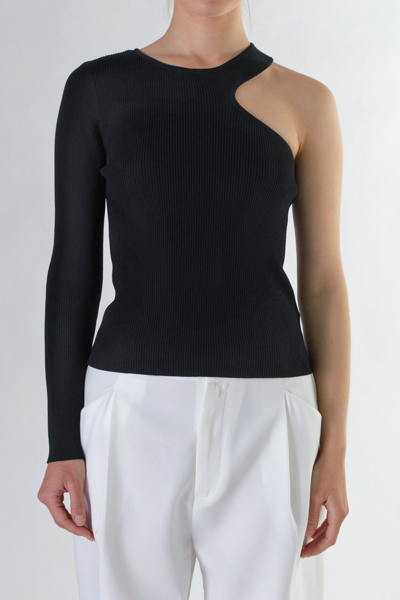 Endless Rose Women’s Cut Out One Shoulder Knit Top | Tan|ivory|black