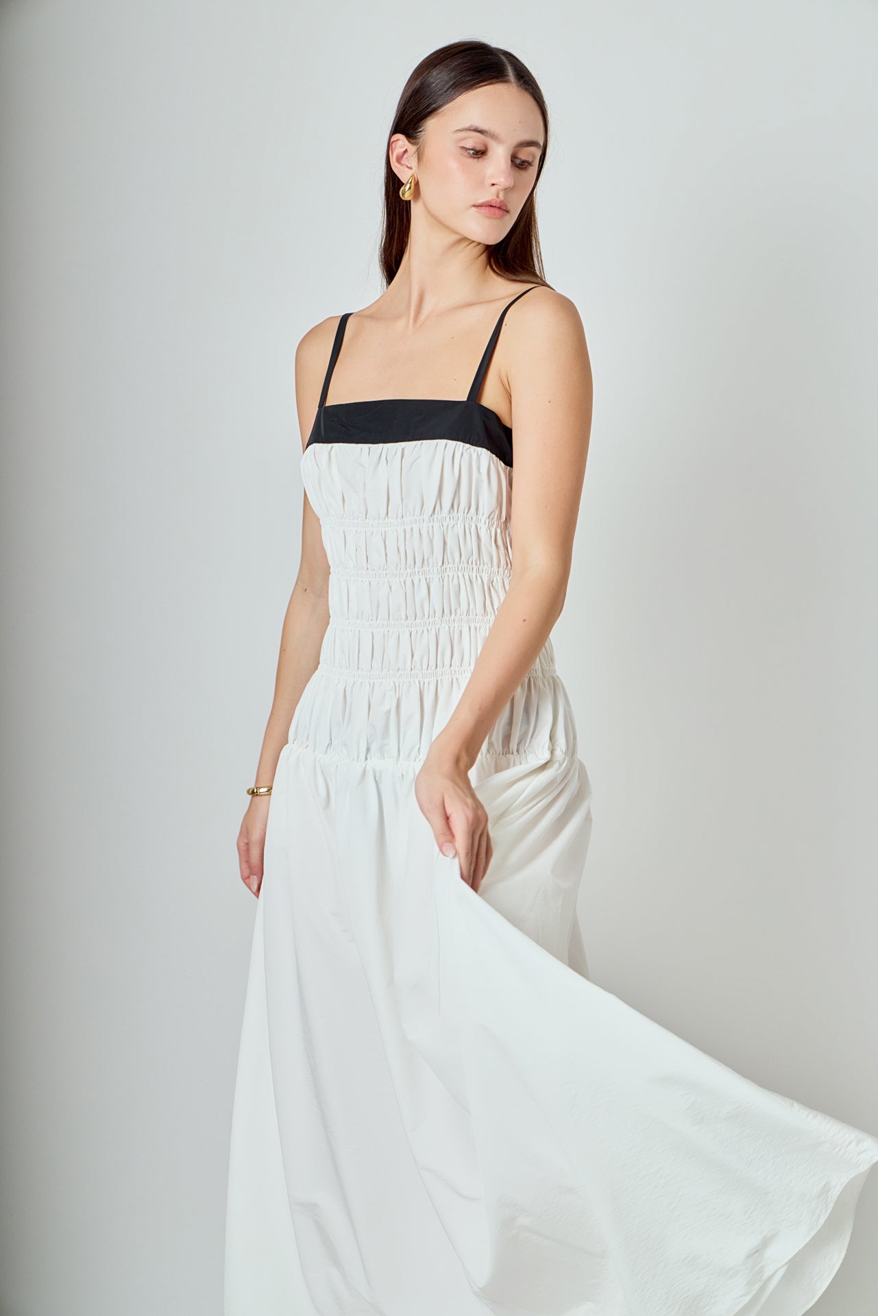 Endless Rose Women’s Dresses Amara Smocked Taffeta Maxi Dress | White & Black