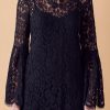 Endless Rose Women’s Dresses Bell Sleeve Lace Dress | Navy|off White|black