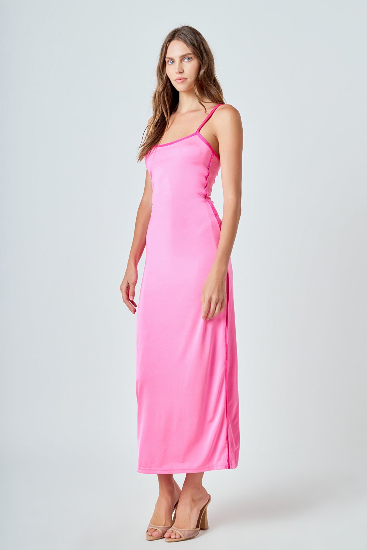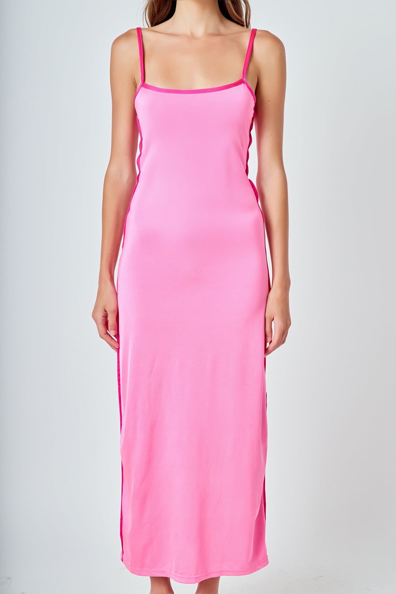 Be the fashionista in this amazing Contrast Binding Maxi Dress! This fitted dress offers you a maxi length cut with adjustable spaghetti ties so you can find the fit that best suits you. The contrast binding detail is sure to turn heads and make you the envy of all your friends. Get this dress in your wardrobe now and be rest assured you will be making a bold lasting fashion statement!