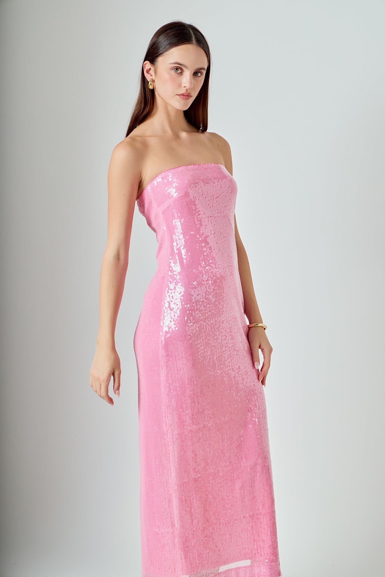 This Courtney Strapless Sequins Maxi Dress is a gorgeous way to make a statement at any special event. The maxi length and strapless design allows for maximum impact with minimal effort while the beautiful sequins easily catch the eye. The side zipper closure makes it easy to slip into for an easy and comfortable fit. Get heads turning at your next event with this beautiful and fashionable maxi dress. Make every occasion special with this gorgeous sequin maxi dress.