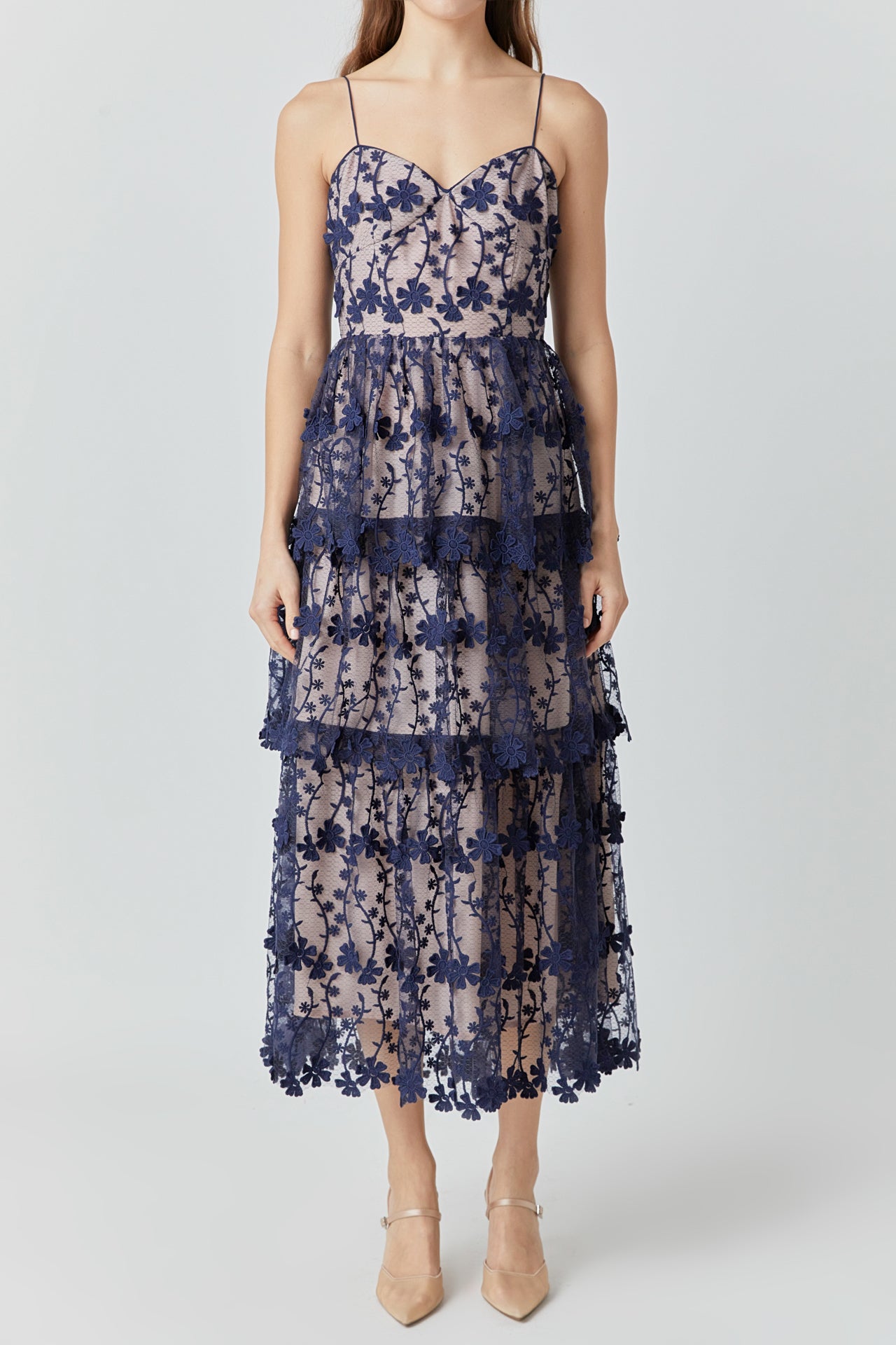 Endless Rose Women’s Dresses Crochet Layered Midi Dress | Black|navy