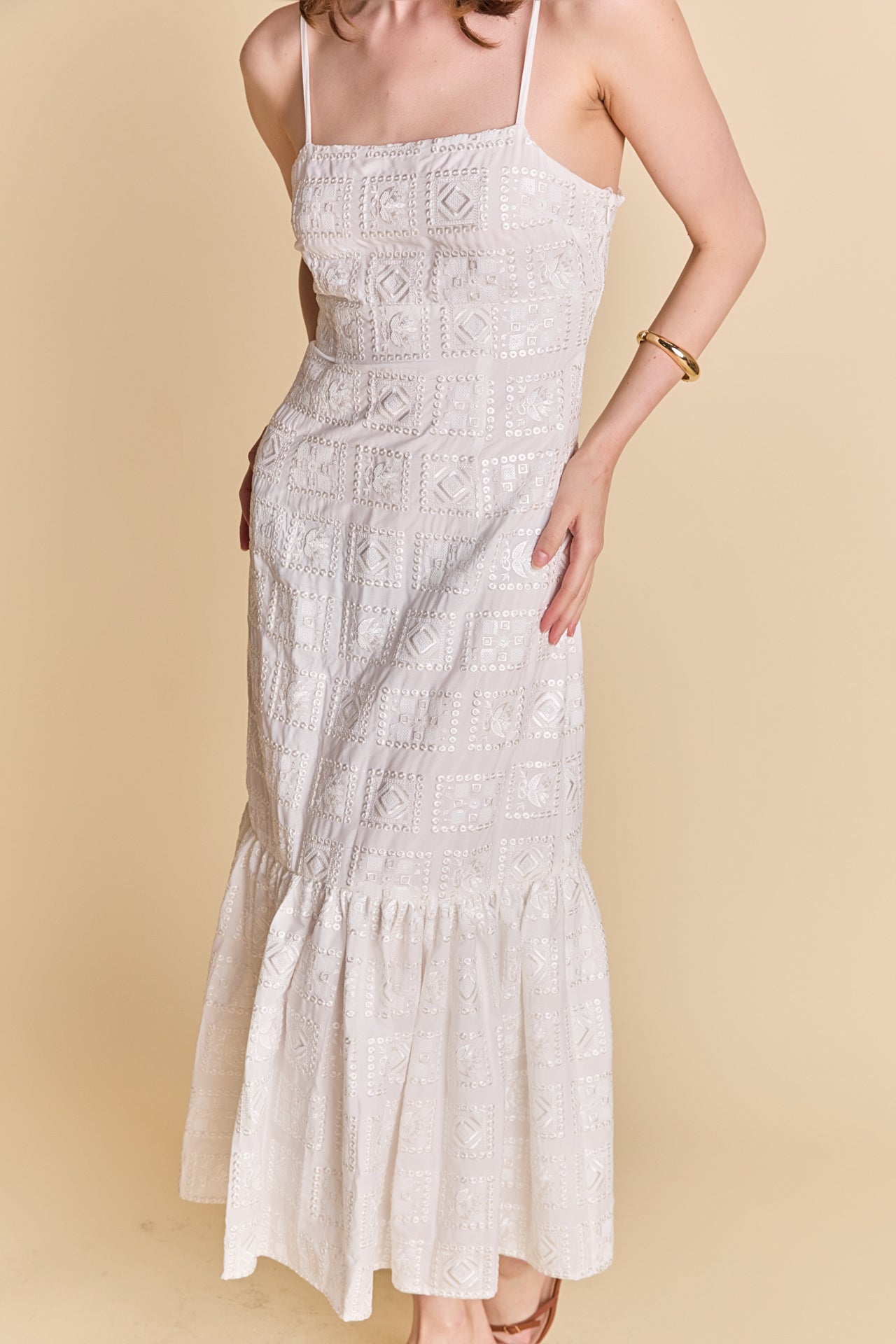 Add a touch of shimmer to your wardrobe with our Embroidered Sequins Maxi Dress! This stunning piece boasts intricate embroidery and dazzling sequin details for a glamorous look. The adjustable straps ensure a perfect fit, while the center back zipper makes it easy to slip on and off. Wear it to your next special occasion and turn heads with your impeccable style. Perfect for weddings, proms, or fancy events. Elevate your fashion game with our Embroidered Sequins Maxi Dress. Don’t miss out on this must-have dress! Order yours now!