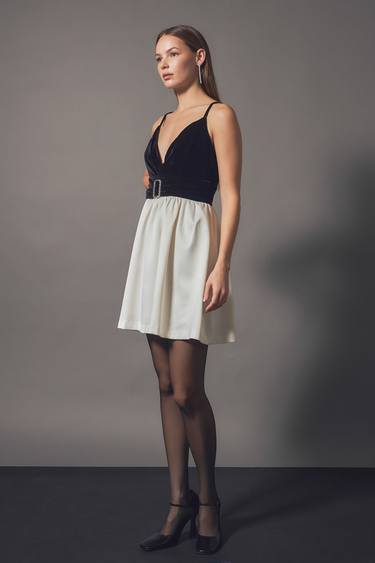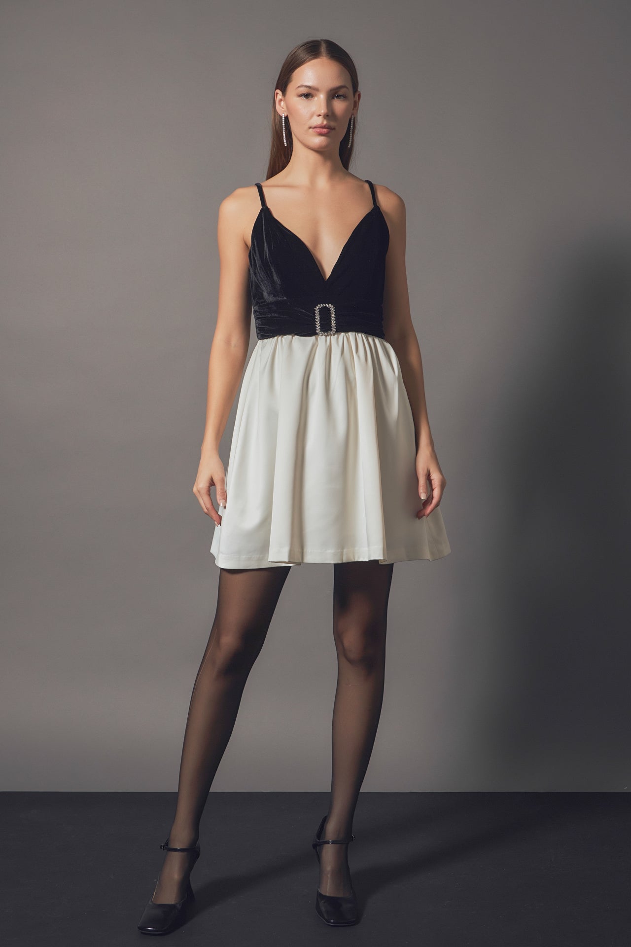 Endless Rose Women’s Dresses Fancy Mixed Media Mini Dress | Black & Ivory