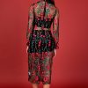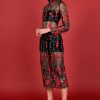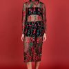 This beautiful Floral Embroidered Midi Dress will complete any look. With a fitted silhouette and midi length it features a mockneck and eye-catching embroidery. Perfect for special occasions this elegant dress is sure to be a wardrobe favorite. Get this stunning dress today to express your own unique style.