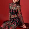 This beautiful Floral Embroidered Midi Dress will complete any look. With a fitted silhouette and midi length it features a mockneck and eye-catching embroidery. Perfect for special occasions this elegant dress is sure to be a wardrobe favorite. Get this stunning dress today to express your own unique style.