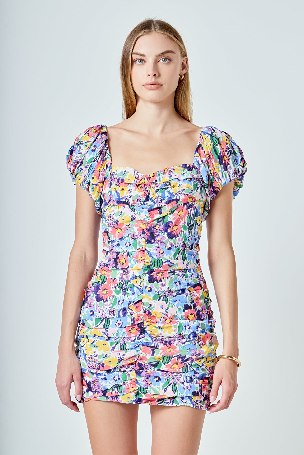 Endless Rose Women’s Dresses Floral Off The Shoulder Ruched Mini Dress | Multi