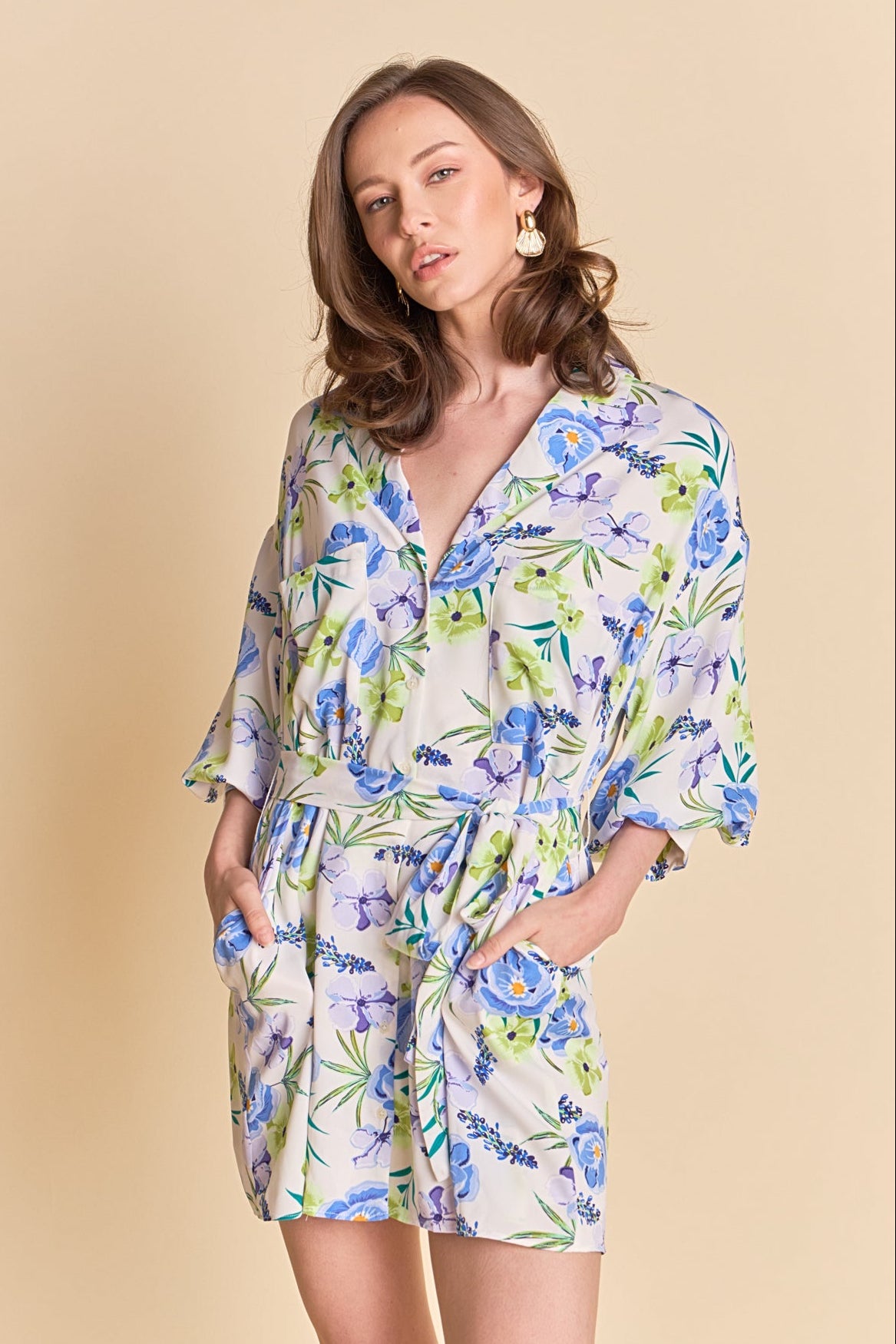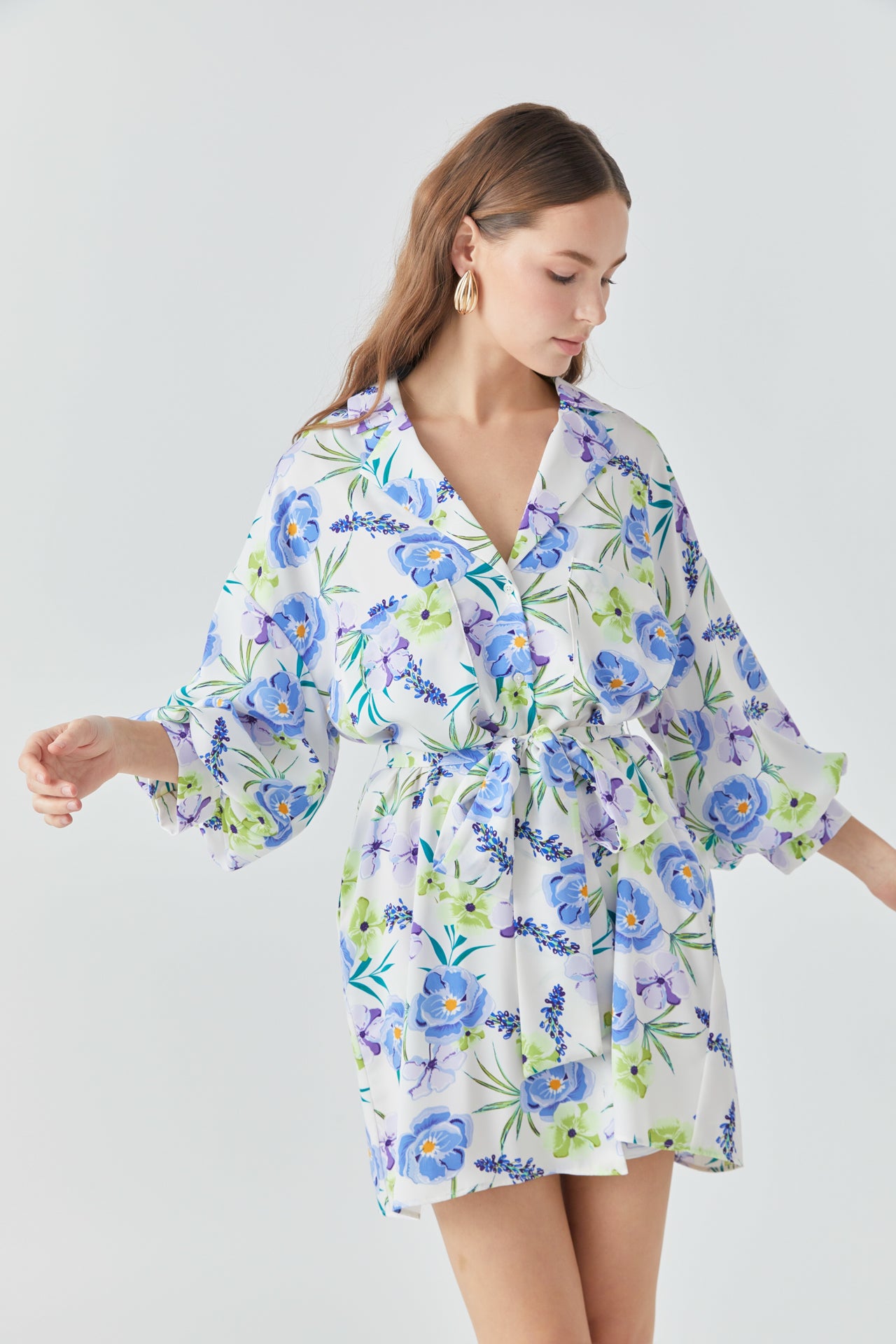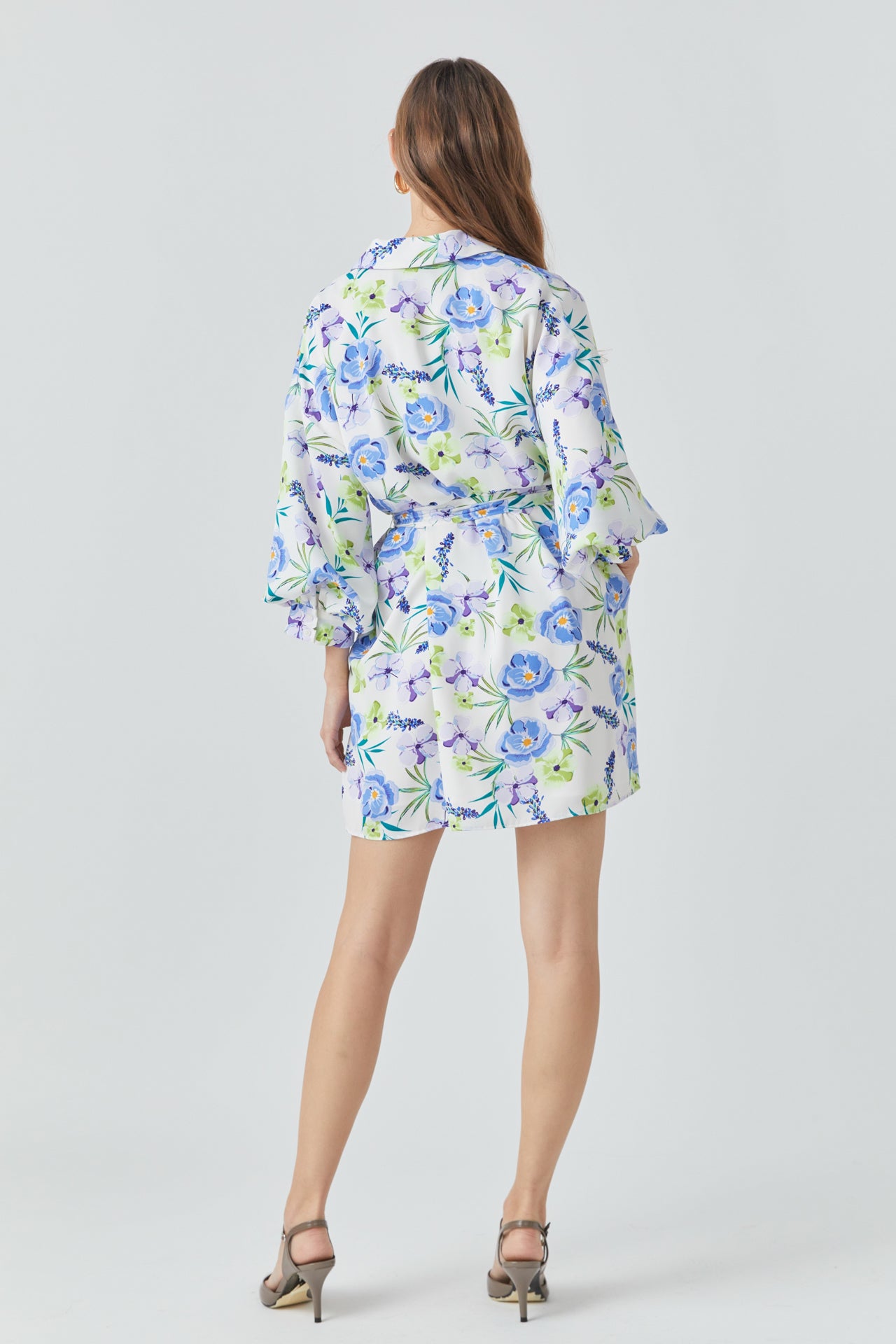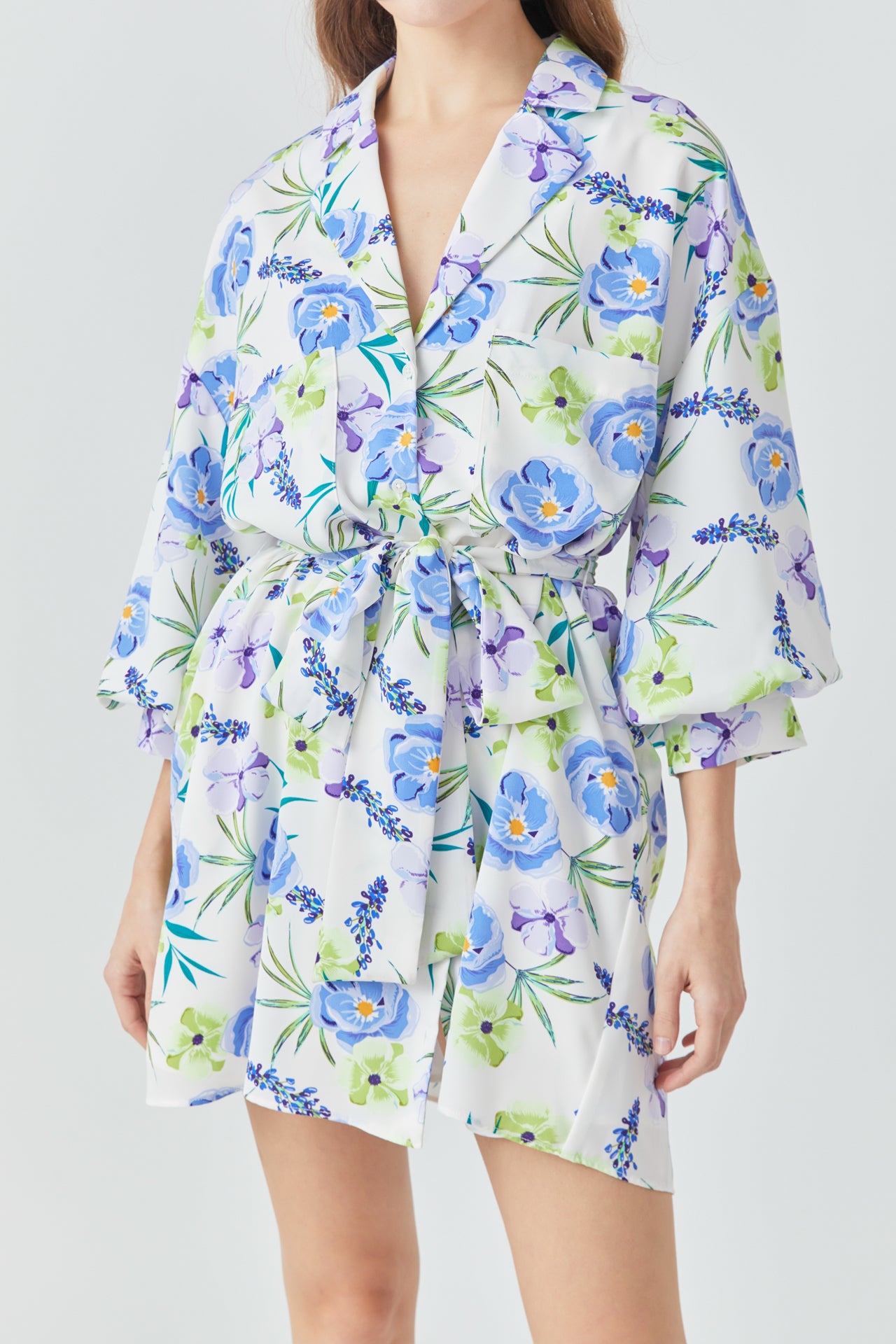Endless Rose Women’s Dresses Floral Print Belted Collared Dress | Blue