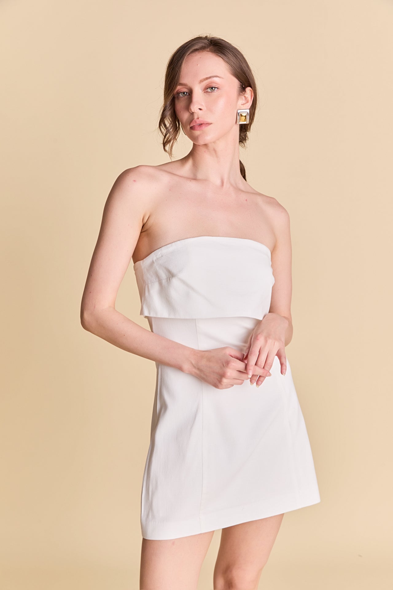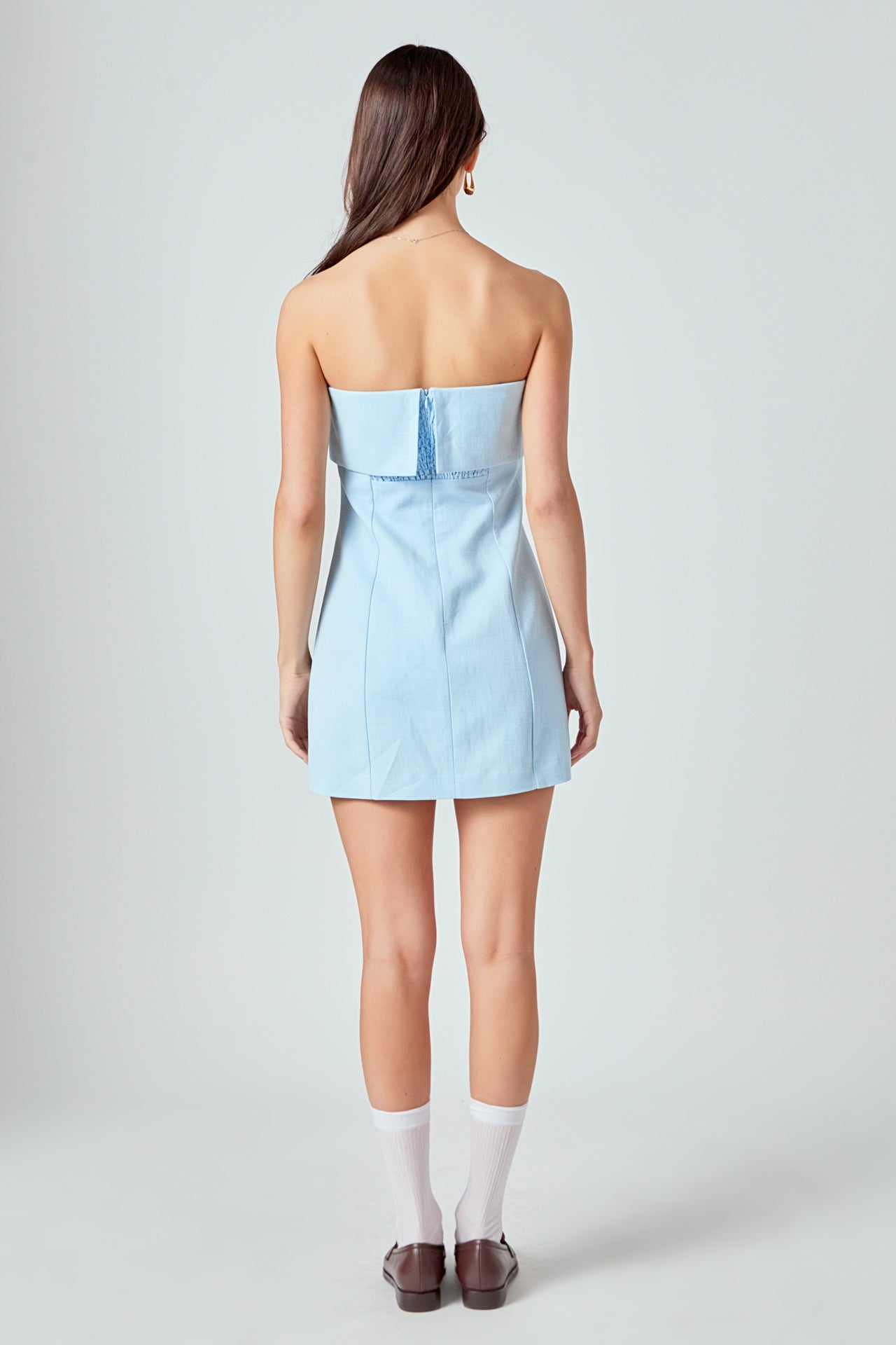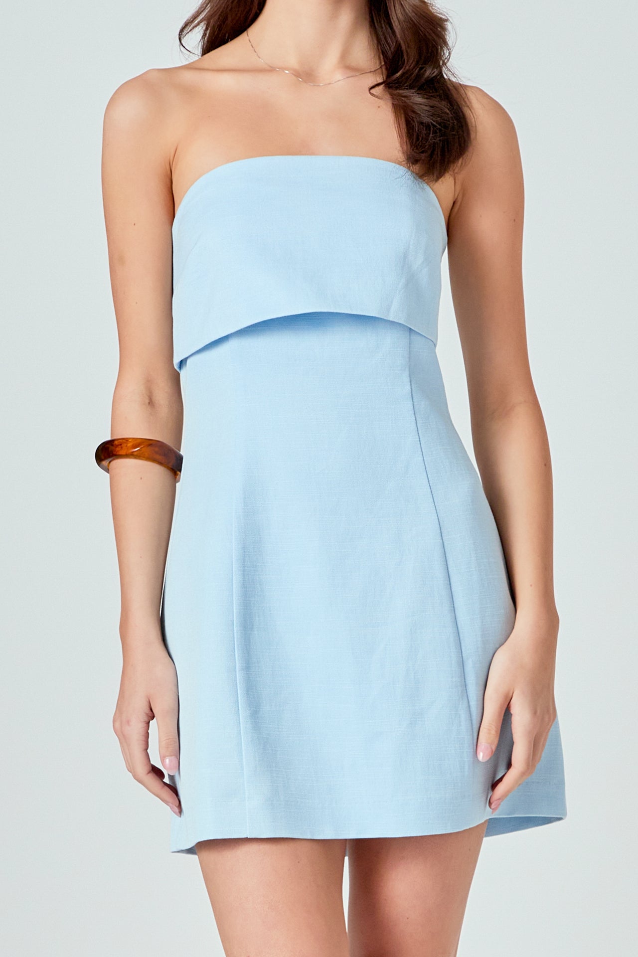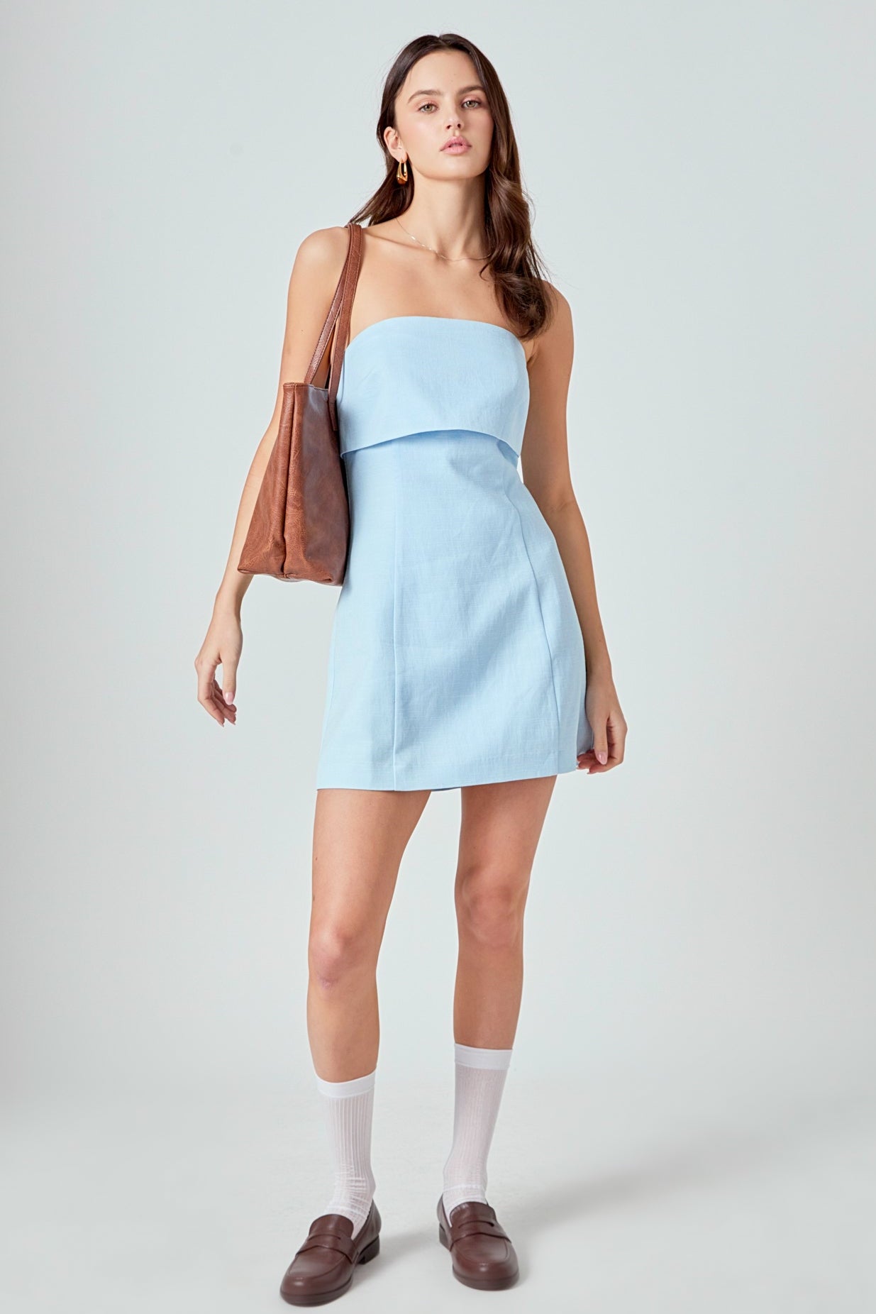 Endless Rose Women’s Dresses Folded Panel Linen Mini Dress | White|ocean Blue