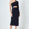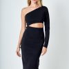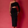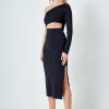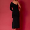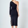 Endless Rose Women’s Dresses Knit One Shoulder Midi Dress | Black