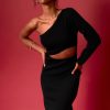 Endless Rose Women’s Dresses Knit One Shoulder Midi Dress | Black
