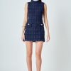Endless Rose Women’s Dresses Lace Detail Tweed Mini Dress | Navy