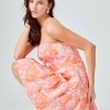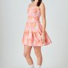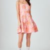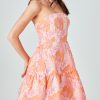 Endless Rose Women’s Dresses Lindsey Floral Jacquard Strapless Blouson Mini Dress | Pink & Orange