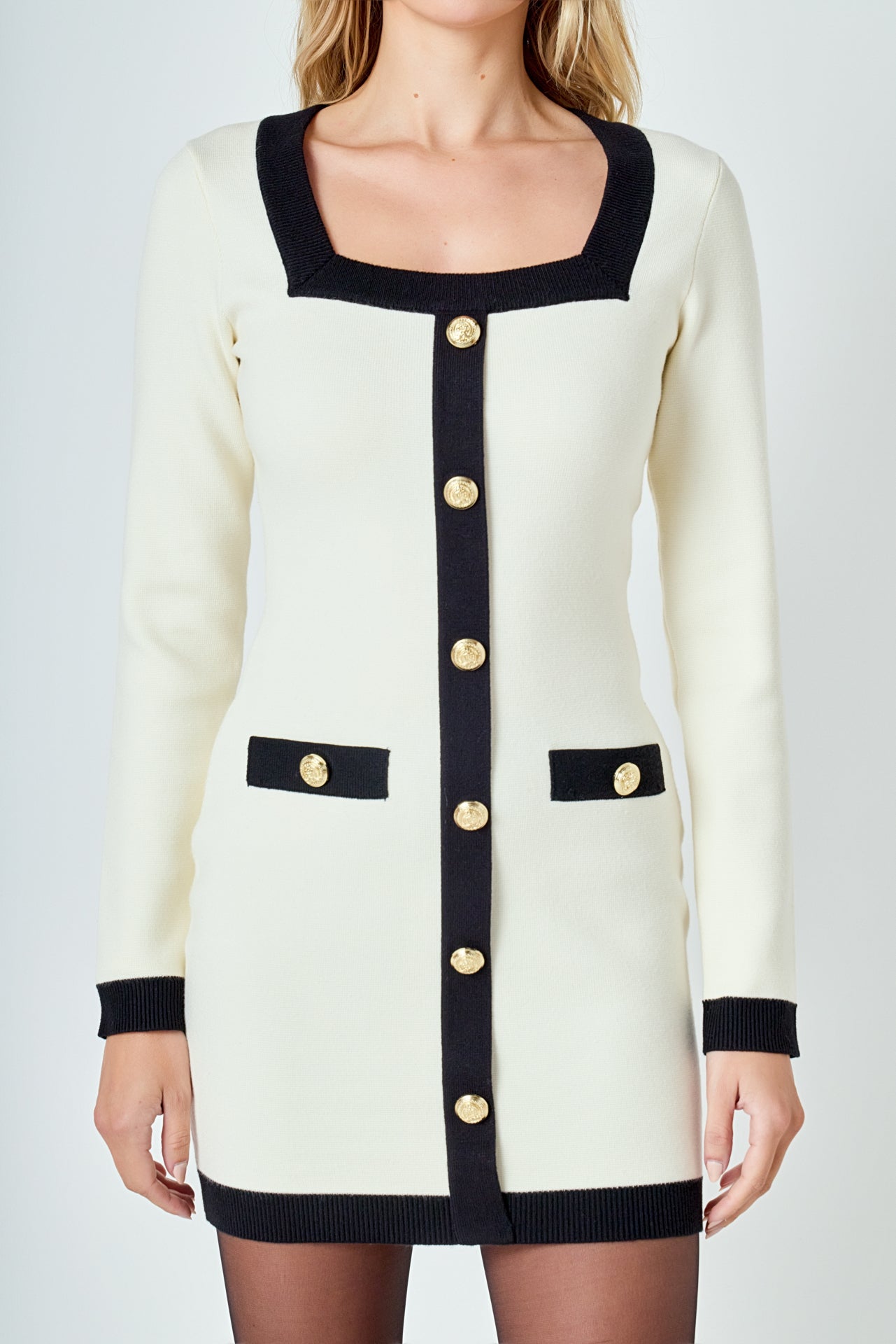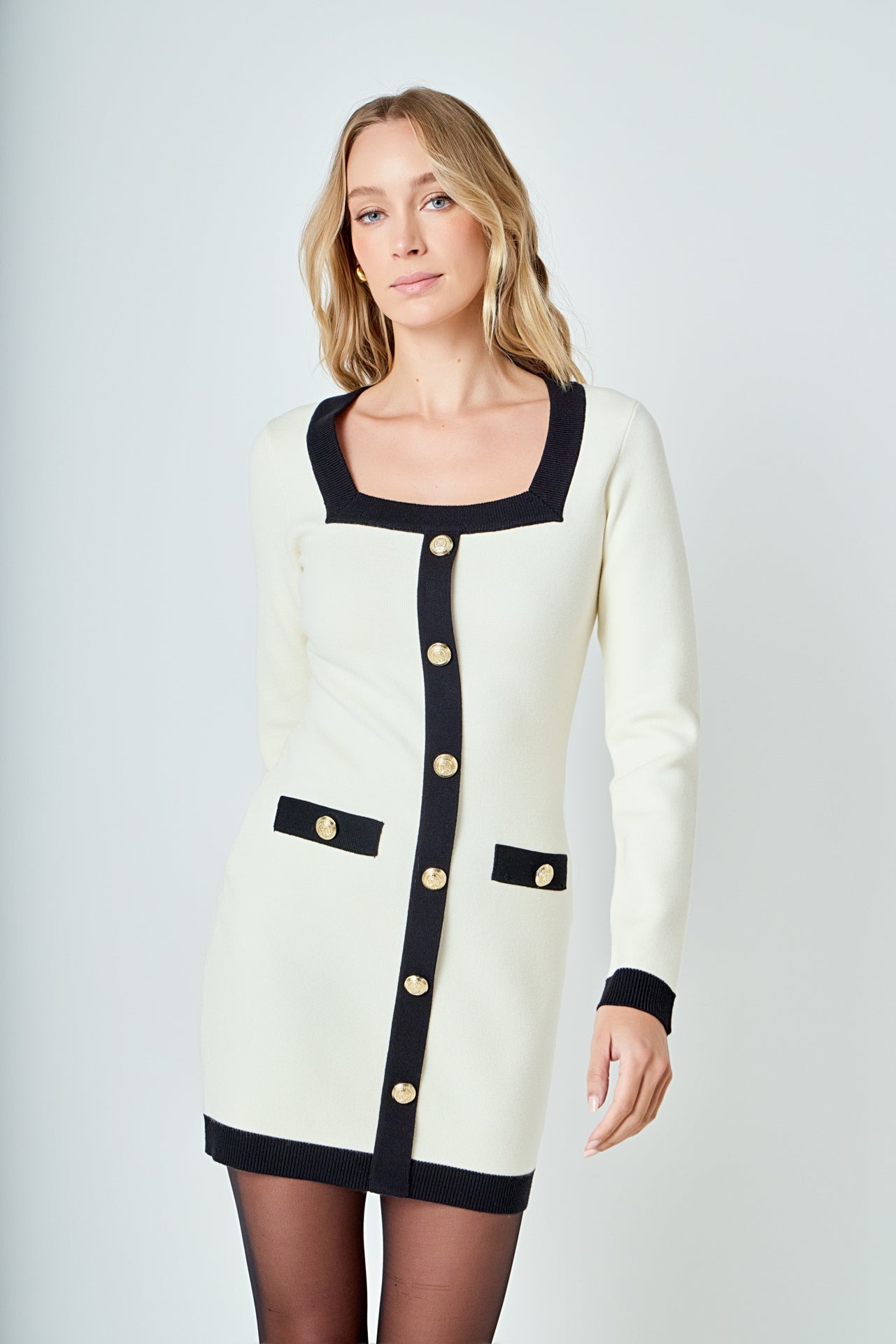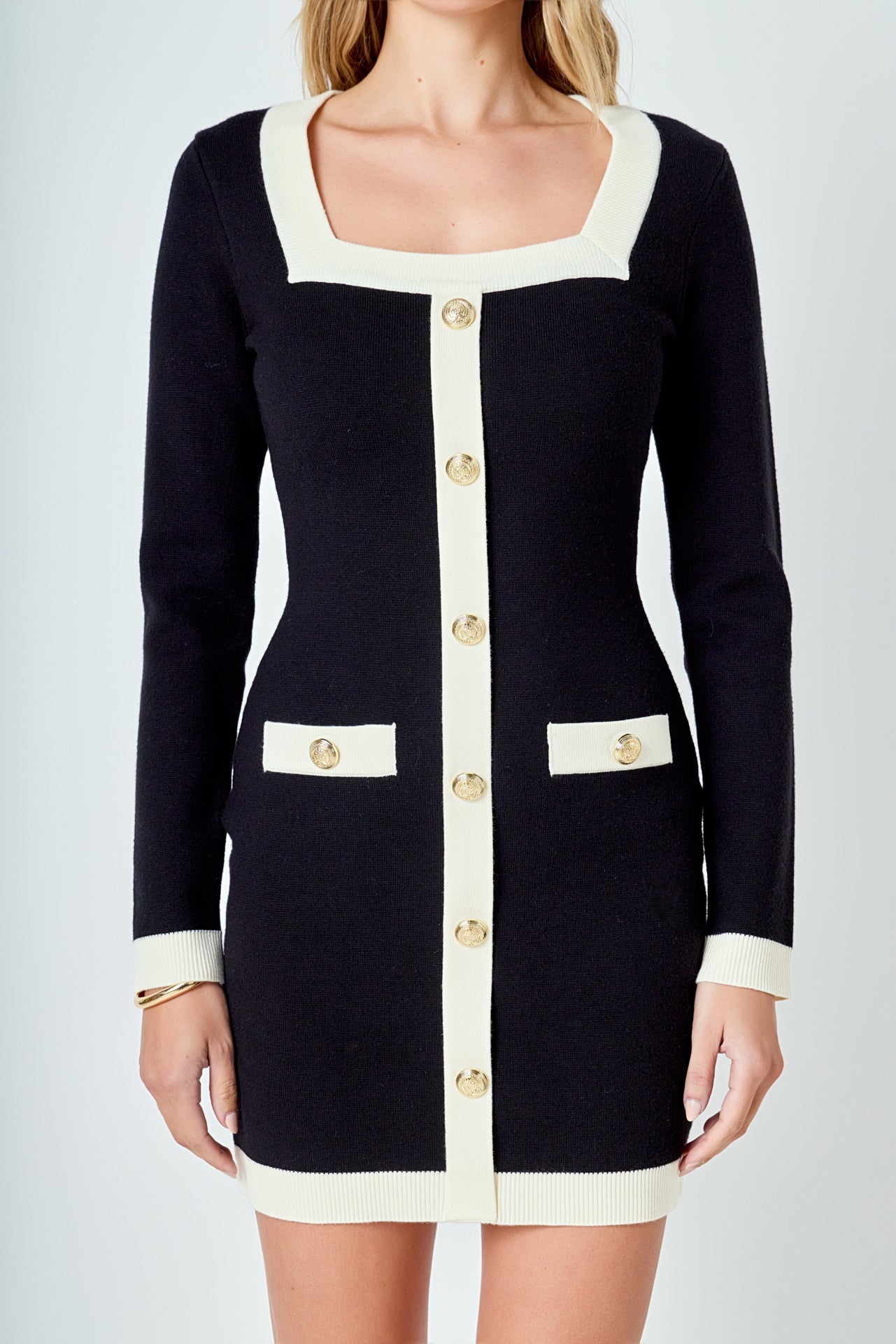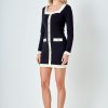Endless Rose Women’s Dresses Long-sleeve Knit Mini Dress | Black & Cream|cream & Black