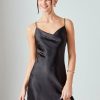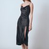 Made of silky satin, this slip dress is perfect for all of your special occasions. You’ll feel sleek and sexy, but also comfortable. The beautiful cowl neck is perfect for highlighting necklaces and the thigh-high slit lets you show off some leg. Plus, the chain straps add a subtle touch of glamour.