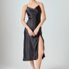 Made of silky satin, this slip dress is perfect for all of your special occasions. You’ll feel sleek and sexy, but also comfortable. The beautiful cowl neck is perfect for highlighting necklaces and the thigh-high slit lets you show off some leg. Plus, the chain straps add a subtle touch of glamour.
