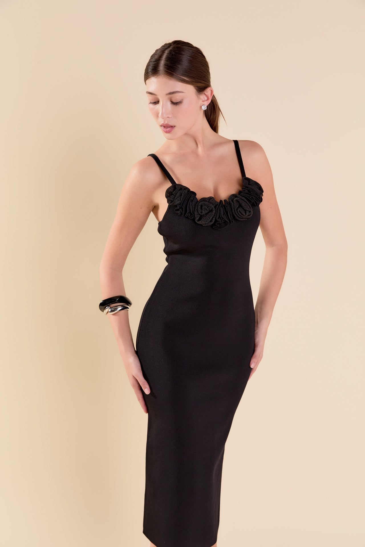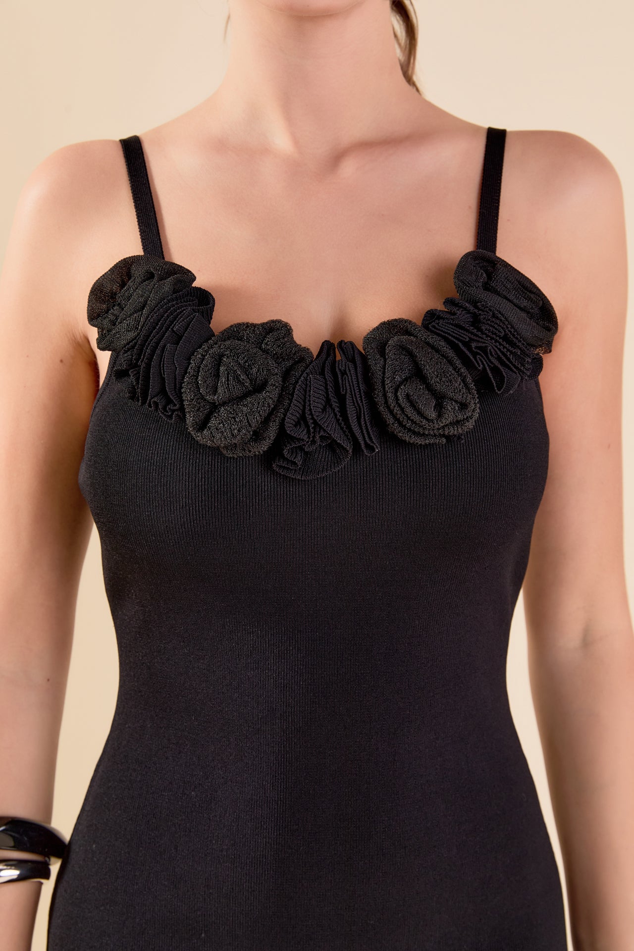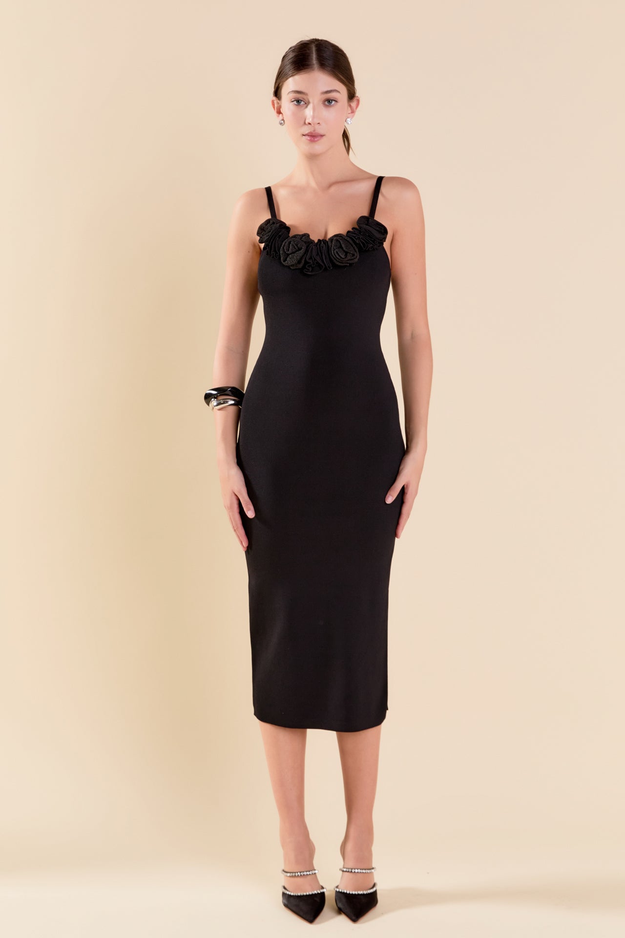 Endless Rose Women’s Dresses Mixed 3d Flower Knit Maxi Dress | Lavender|black
