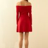 Be the center of attention in our Off Shoulder Mini Flare Knit Dress. Made from a high-quality, stretchy knit fabric, this dress hugs your curves in all the right places. The off-shoulder design adds a touch of elegance, while the long sleeves keep you warm on chilly nights. The fit and flare silhouette creates a flattering shape that will have you feeling confident and stylish. Perfect for a night out or special occasion, this dress is a must-have in your wardrobe. Shop now and make a statement in our Off Shoulder Mini Flare Knit Dress!