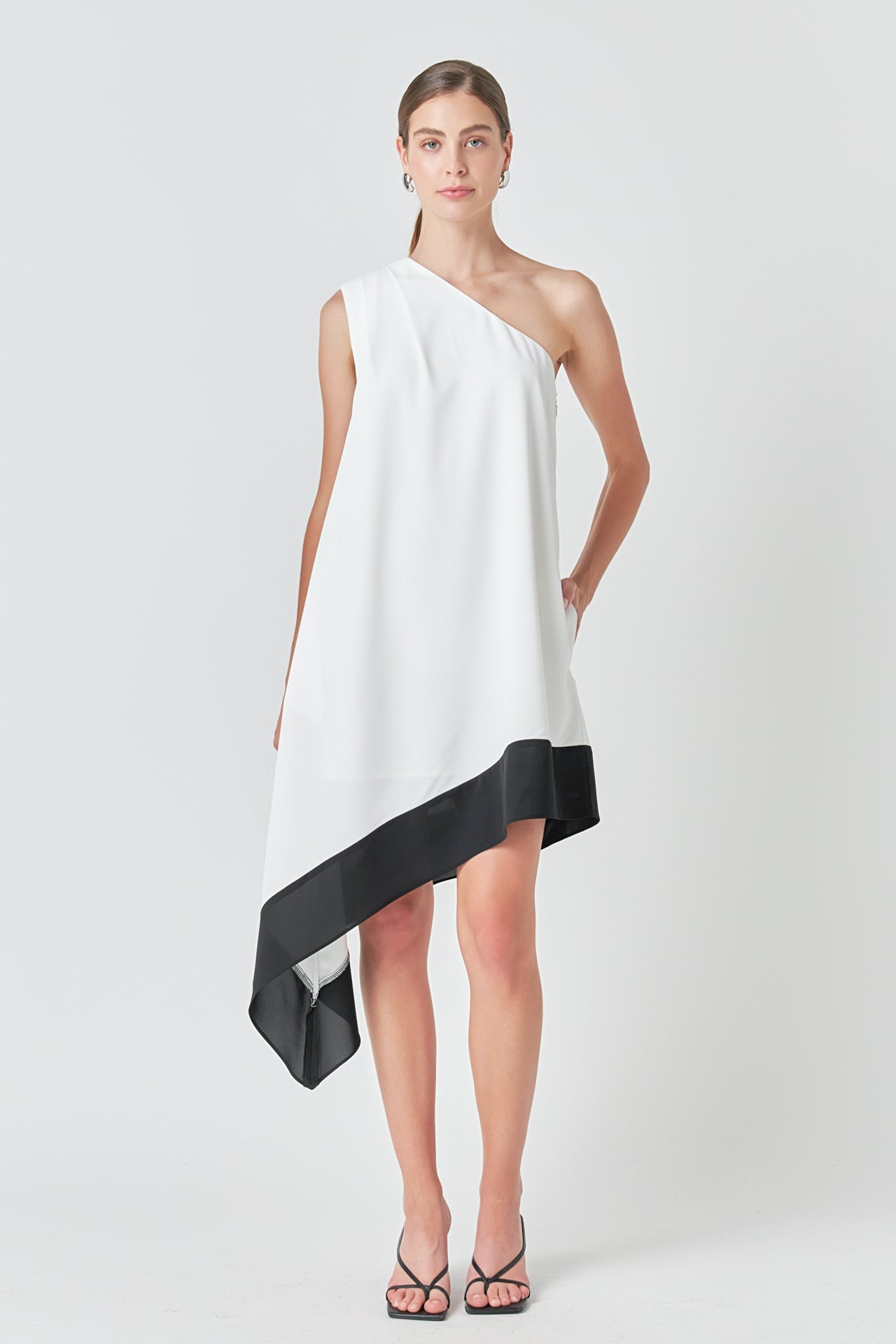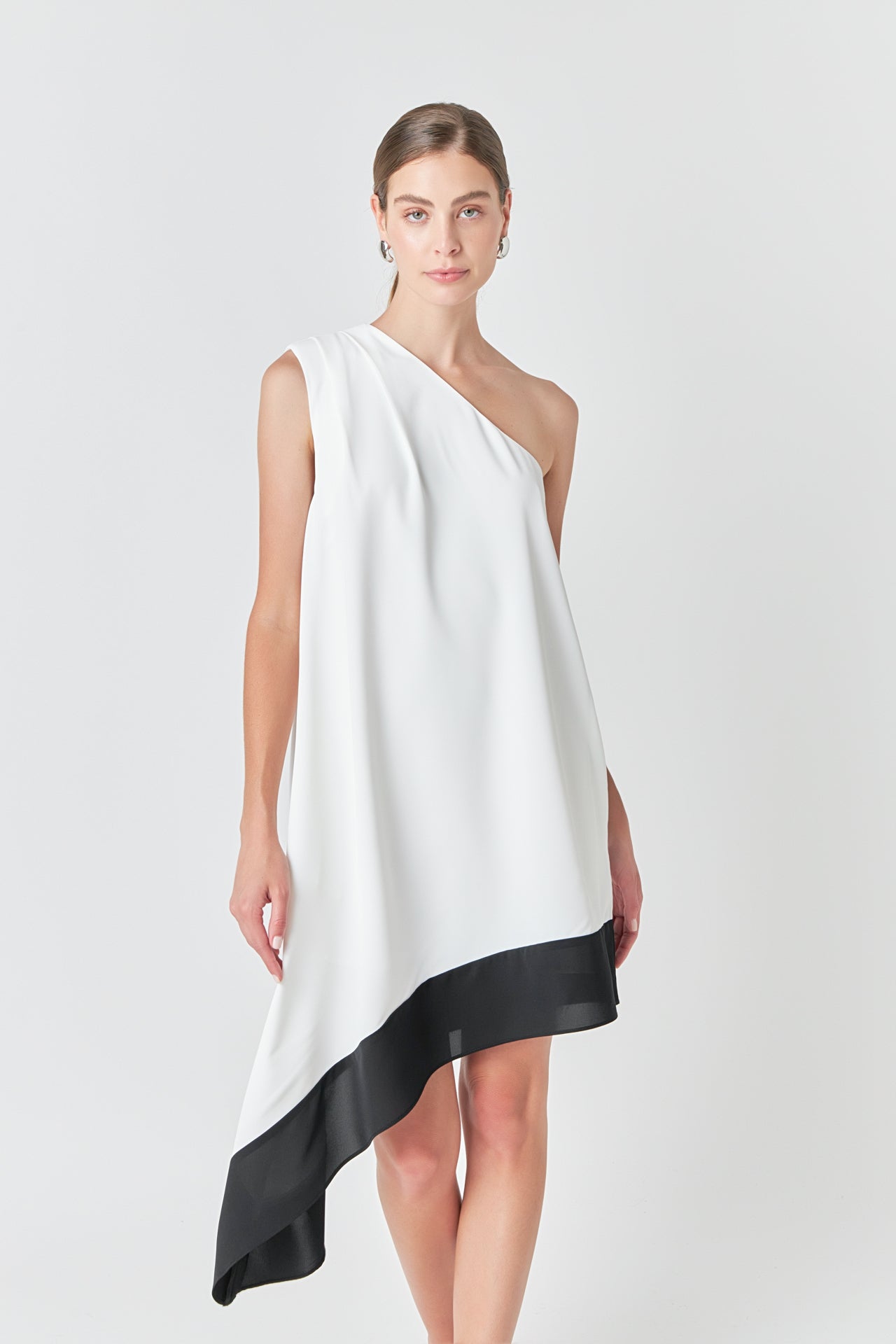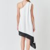 Flaunt a fashion-forward look with our one shoulder colorblock dress! The mini length elongates your legs while the asymmetrical waterfall hem adds a touch of drama. The one shoulder design exudes elegant and modern vibes perfect for any occasion. Stand out with the chic shoulder pintuck detail that elevates the overall look. Made with high-quality fabric this dress offers both style and comfort. Crafted for the confident and fashion-conscious woman this dress is a must-have in your wardrobe. Pair it with statement heels and accessories for a show-stopping ensemble. Shop now and be the center of attention!