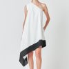 Flaunt a fashion-forward look with our one shoulder colorblock dress! The mini length elongates your legs while the asymmetrical waterfall hem adds a touch of drama. The one shoulder design exudes elegant and modern vibes perfect for any occasion. Stand out with the chic shoulder pintuck detail that elevates the overall look. Made with high-quality fabric this dress offers both style and comfort. Crafted for the confident and fashion-conscious woman this dress is a must-have in your wardrobe. Pair it with statement heels and accessories for a show-stopping ensemble. Shop now and be the center of attention!