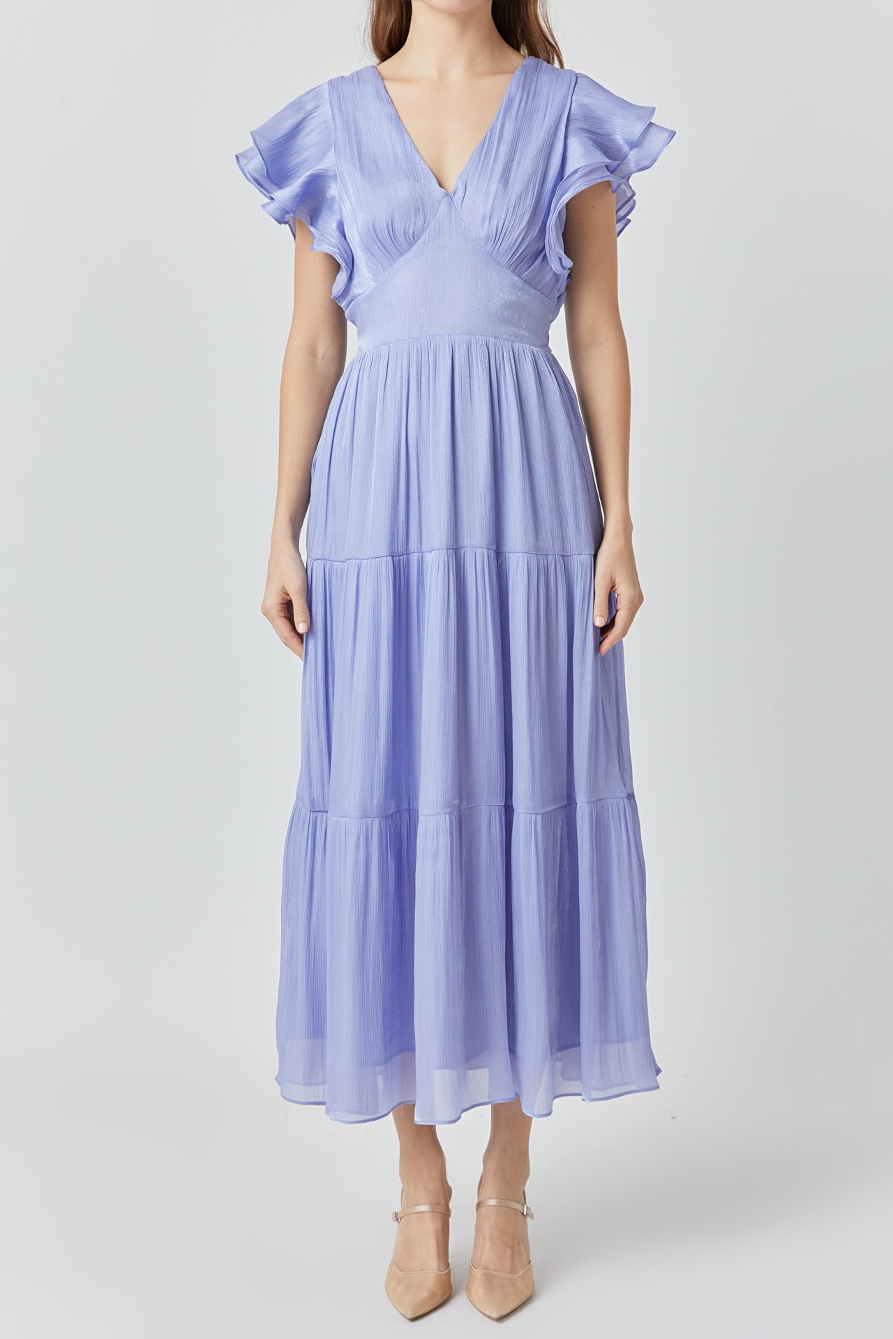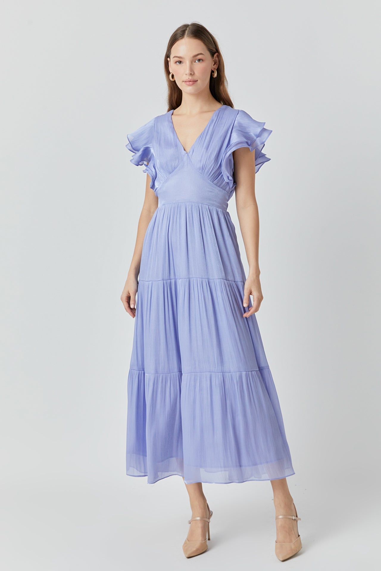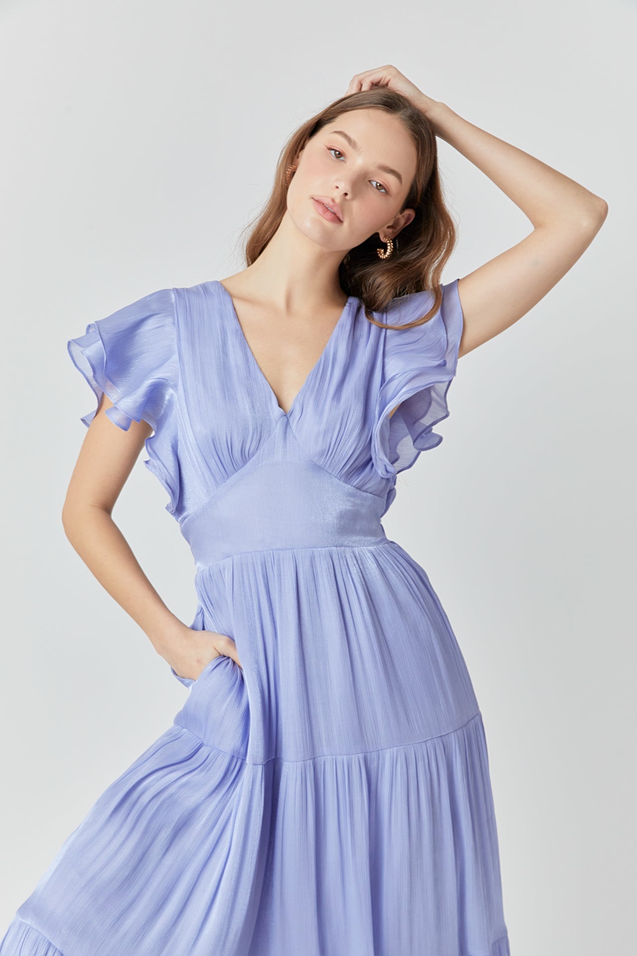 This Open-Back Maxi-Dress has an elegant v-neck and playful ruffled sleeves. Crafted from luxurious sheen crinkle fabric it’s designed to make a lasting impression. The maxi length is perfect for any occasion from an outdoor lunch to a romantic evening. An open back adds a bit of drama. Look your best with this gorgeous dress and show off your unique sense of style!