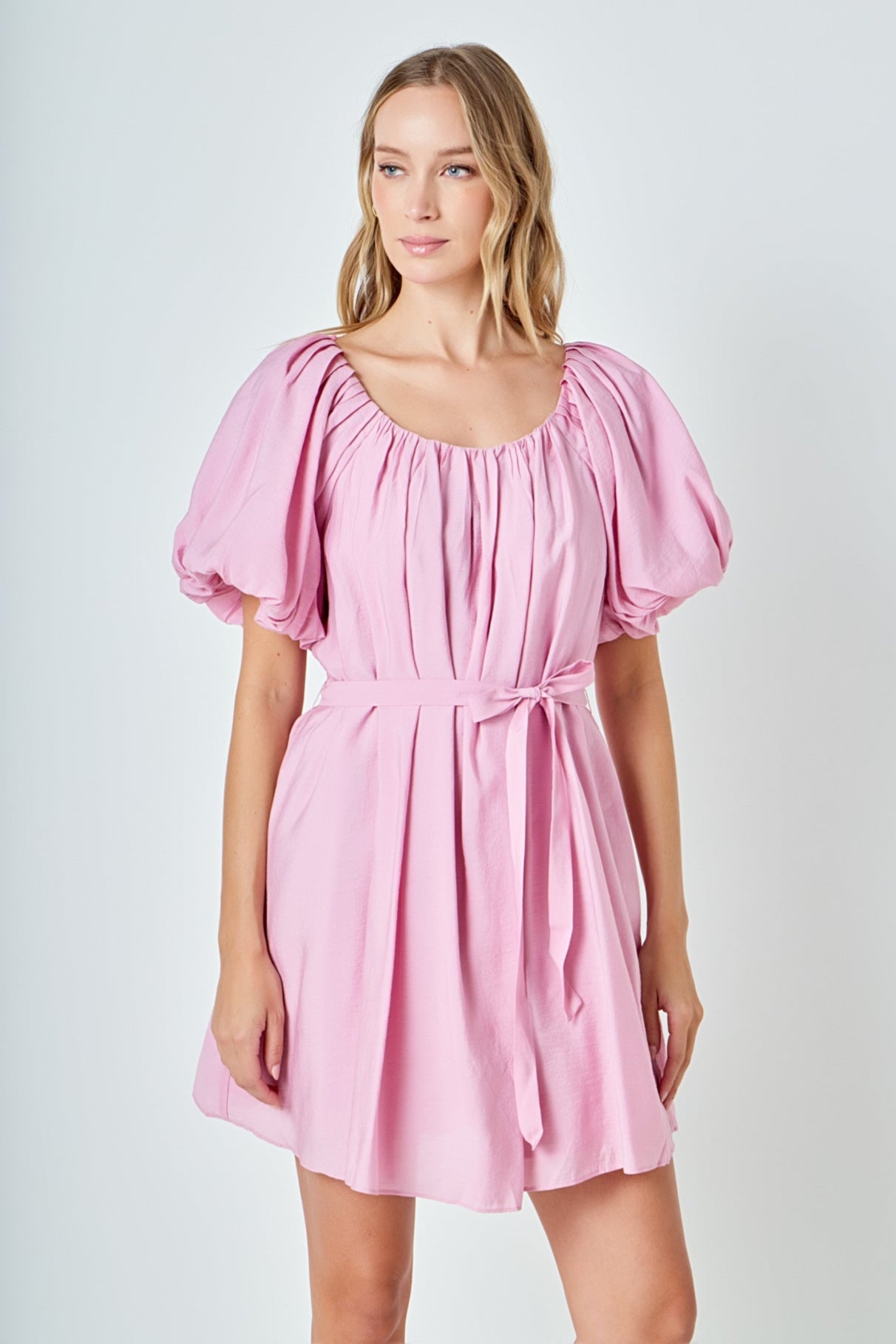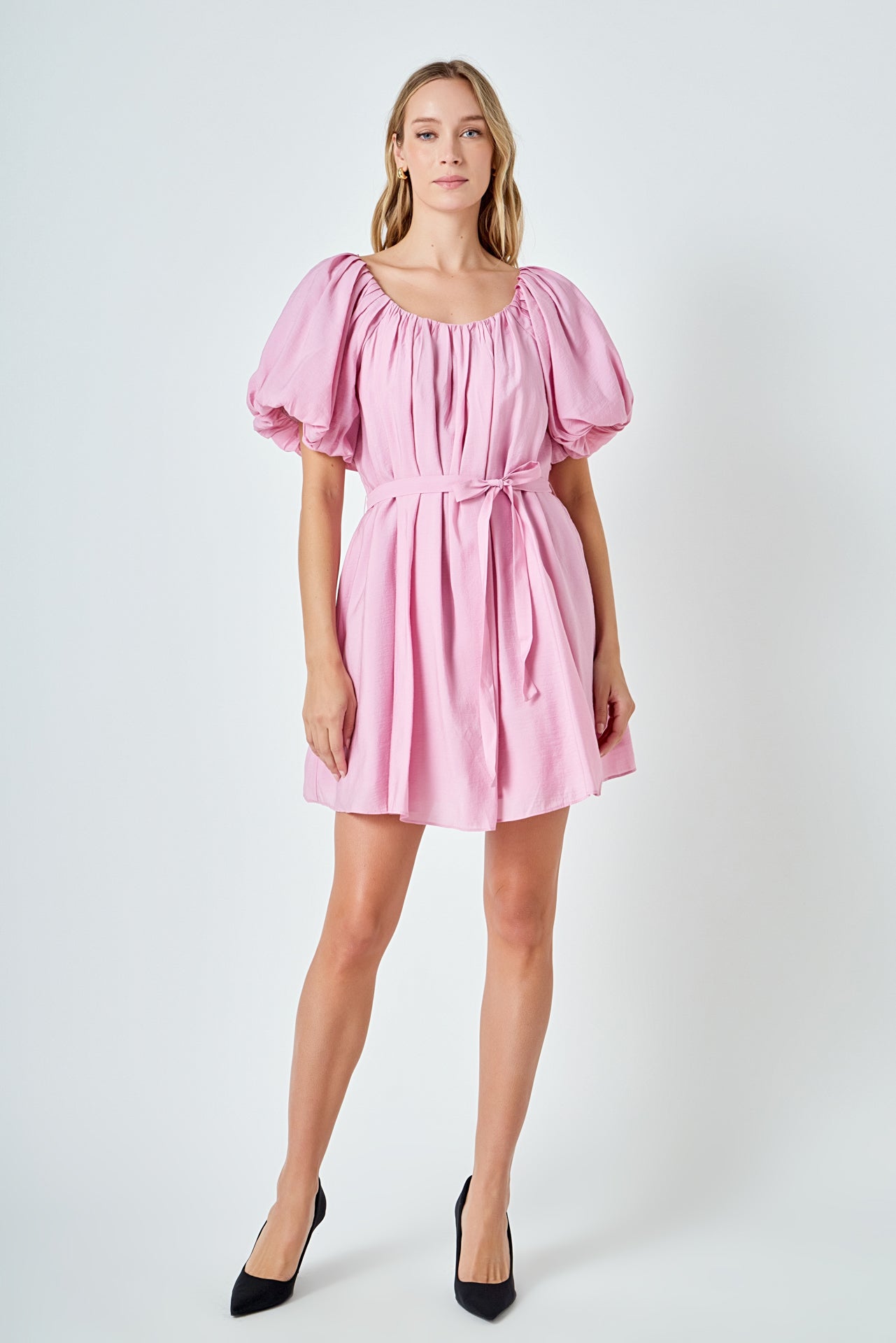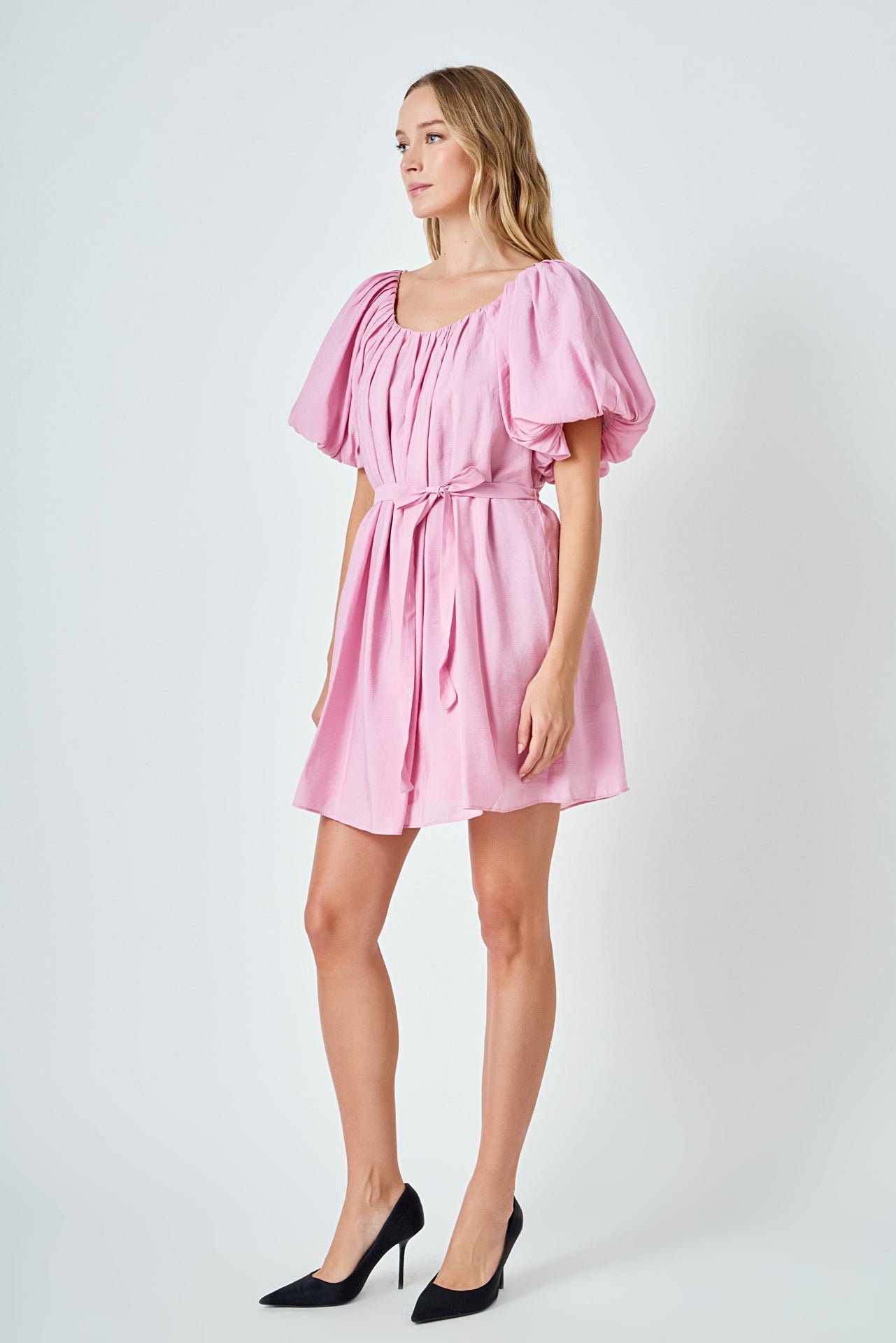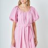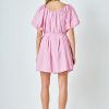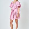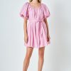 Endless Rose Women’s Dresses Pleated Detail Puff Sleeve Mini Dress | White|pink