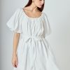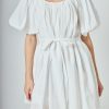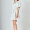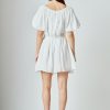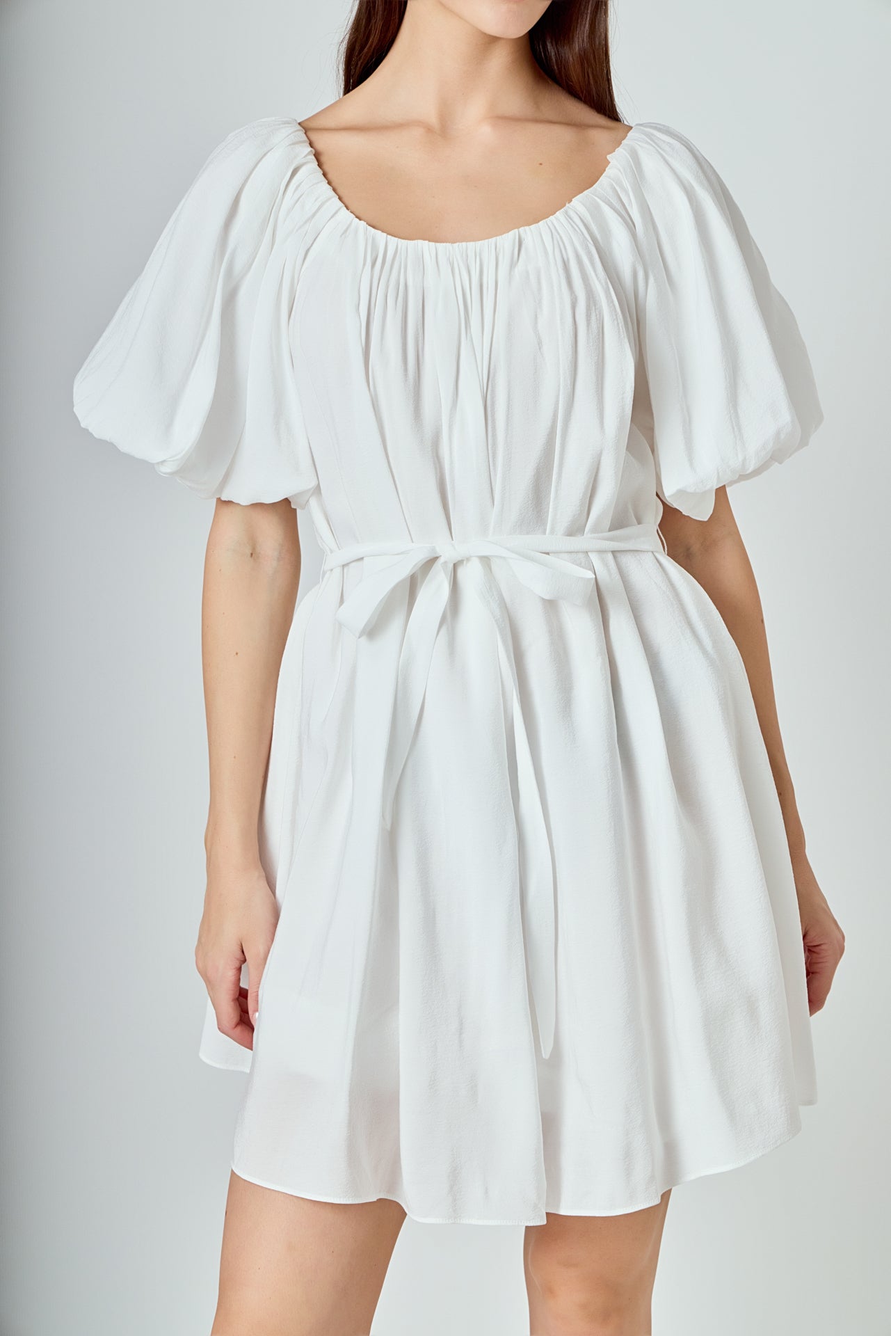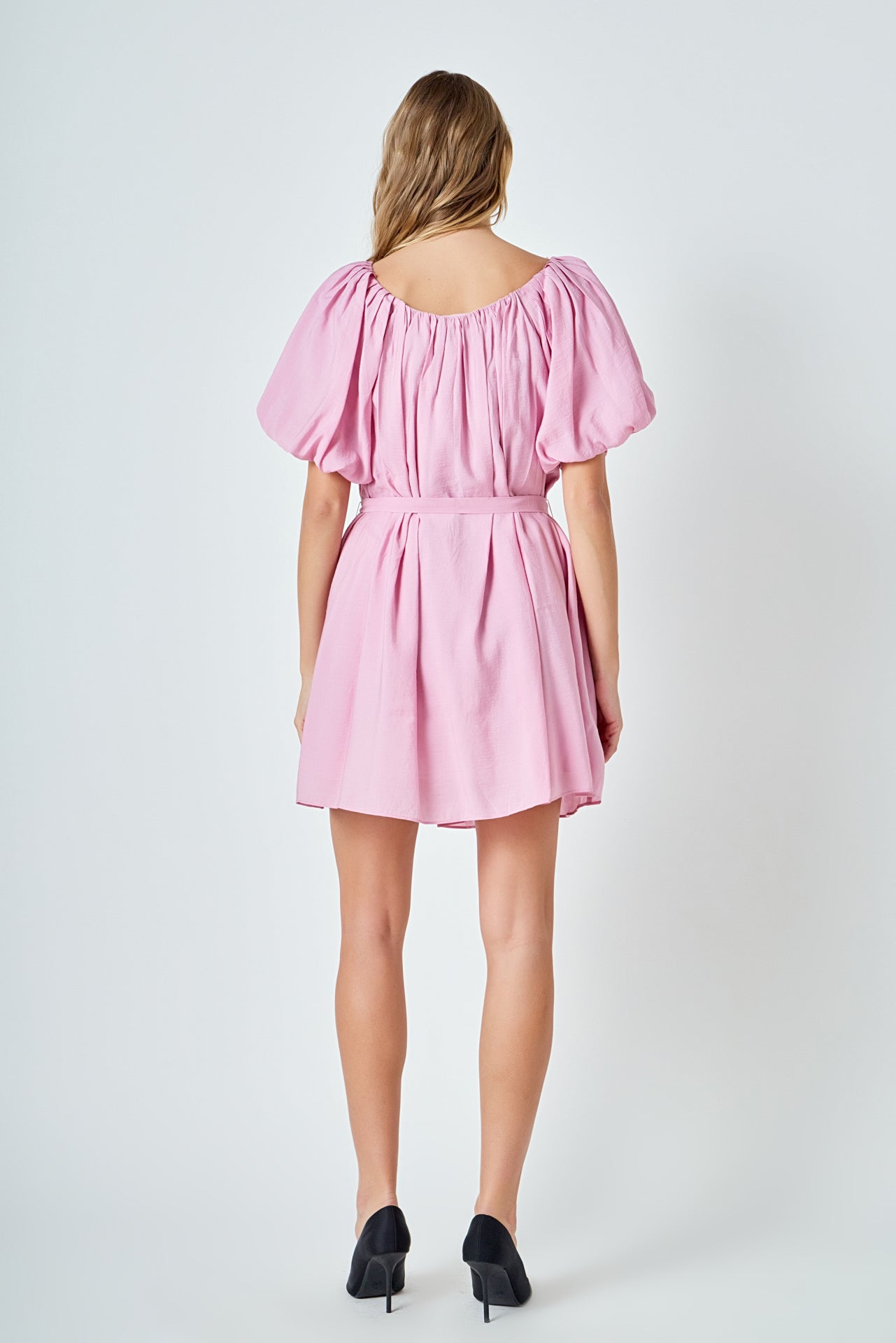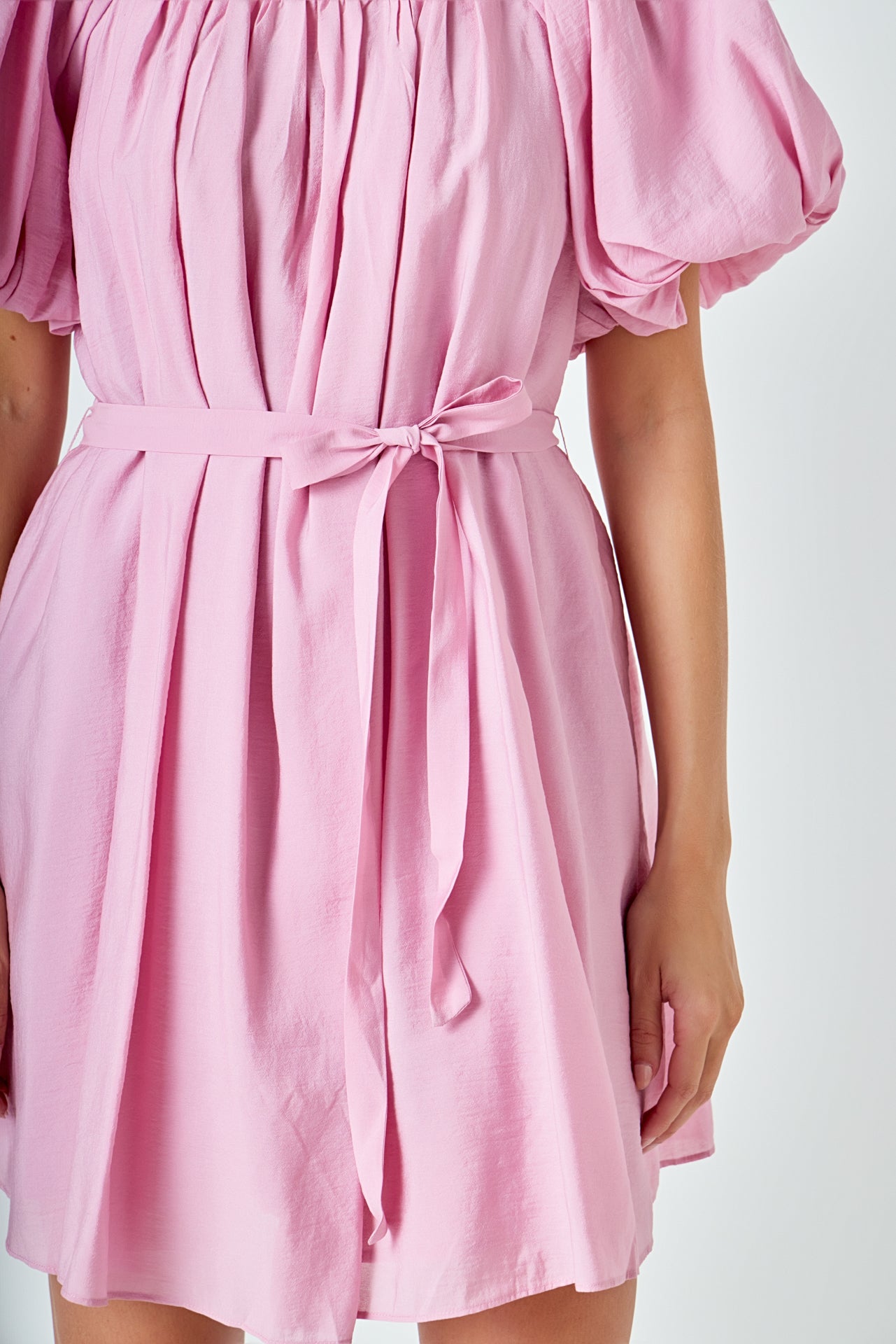 Endless Rose Women’s Dresses Pleated Detail Puff Sleeve Mini Dress | White|pink
